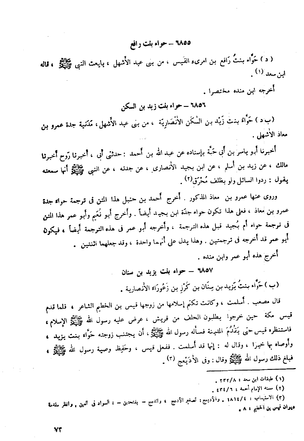 (د) حواء بنت رافع بن امرئ القيس، من بني عبد الأشهل، بايعت النَّبِيّ صَلَّى اللَّهُ عَلَيْهِ وَسَلَّمَ، قاله ابن سعد [١] .