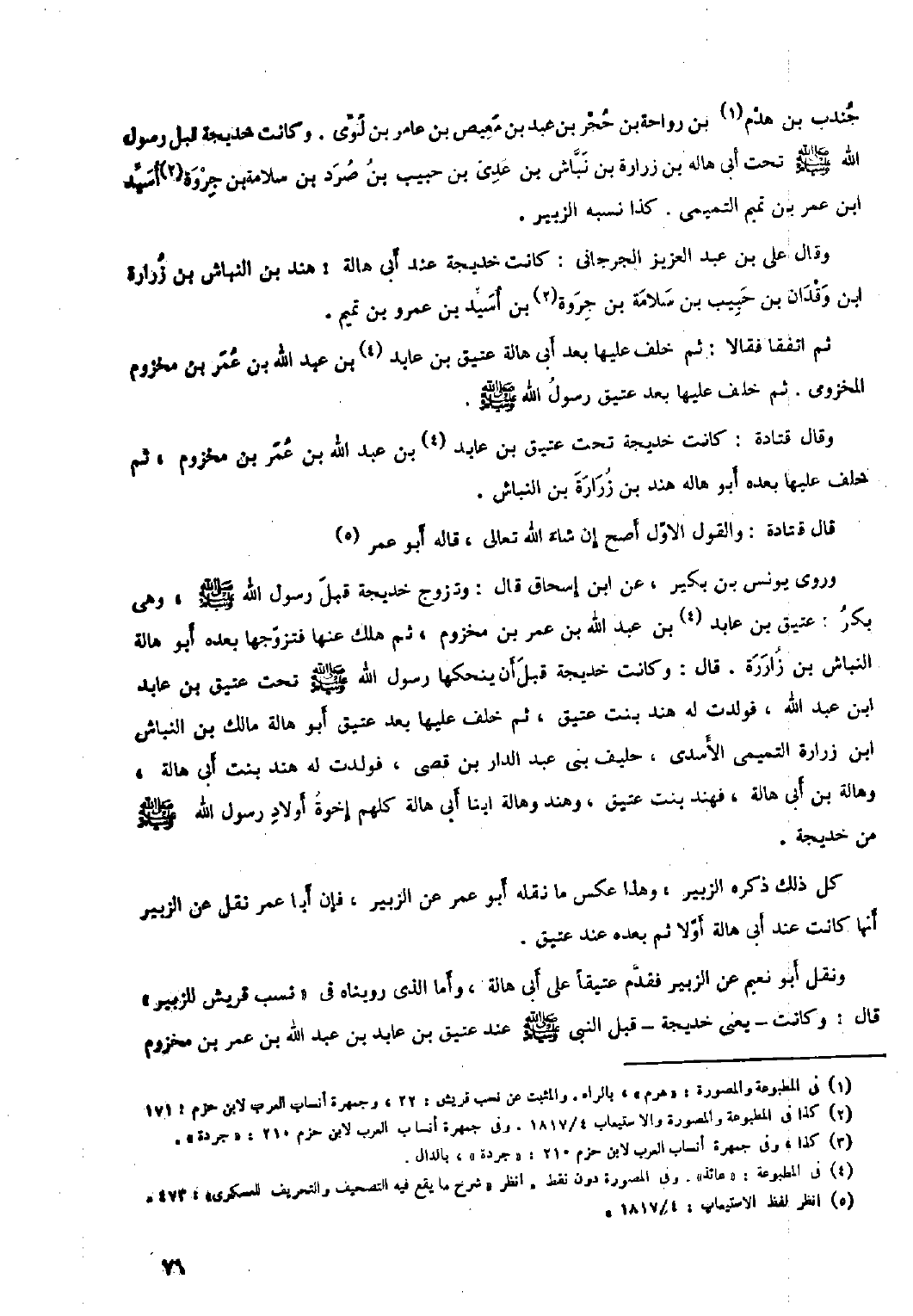جندب بن هدم [١] بْن رواحة بْن حجر بْن عَبْد بْن معيص بن عامر بن لوى. وكانت خديجة قَبْلَ رَسُولِ اللَّه صَلَّى اللَّهُ عَلَيْهِ وَسَلَّمَ تحت أبي هالة بن زرارة بن نباش بن عدي بن حبيب بن صرد بن سلامة بن جروة [٢] أسيّد ابن عمر بن تميم التميمي. كذا نسبه الزبير.