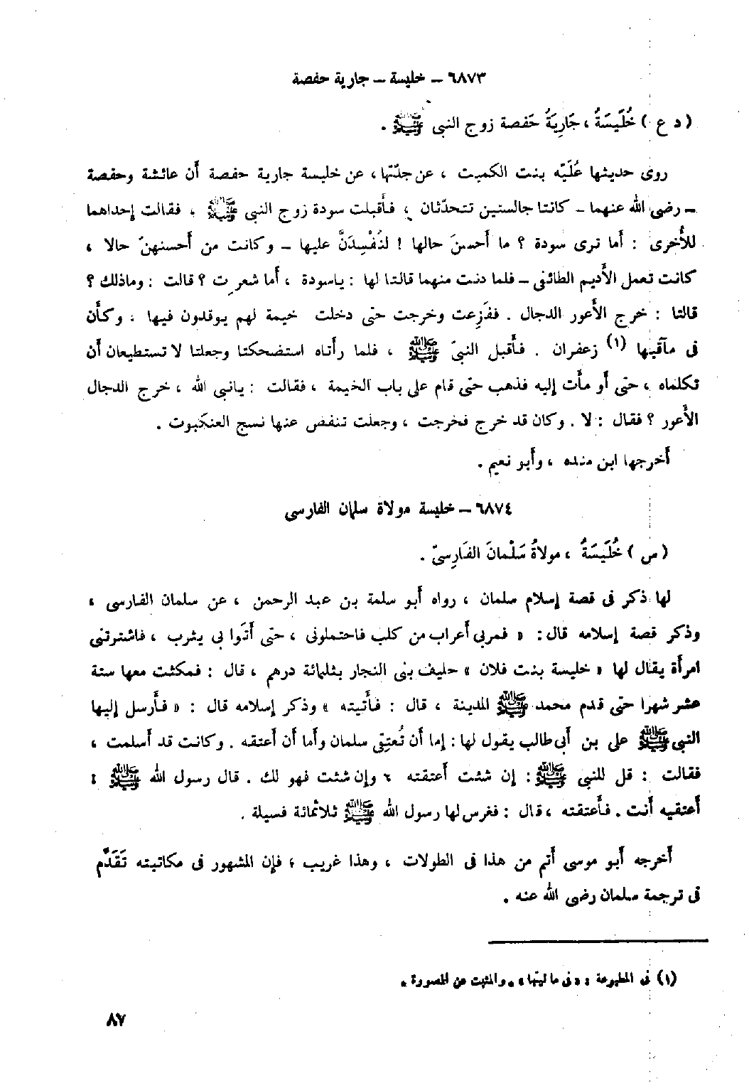 ٦٨٧٤- خليسة مولاة سلمان الفارسي