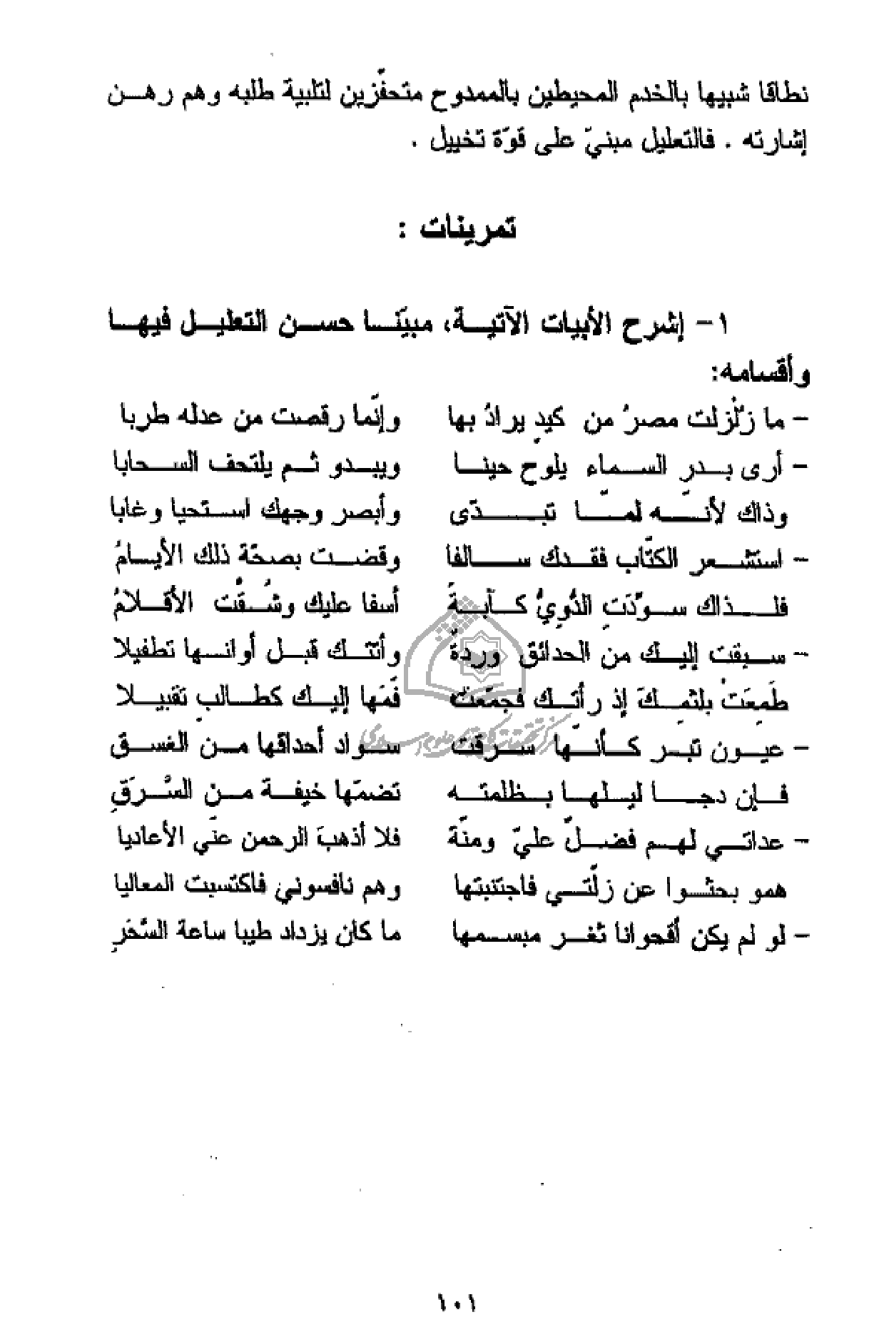 1 - إشرح الأبيات الآتية، مبيّنا حسن التعليل فيها وأقسامه: