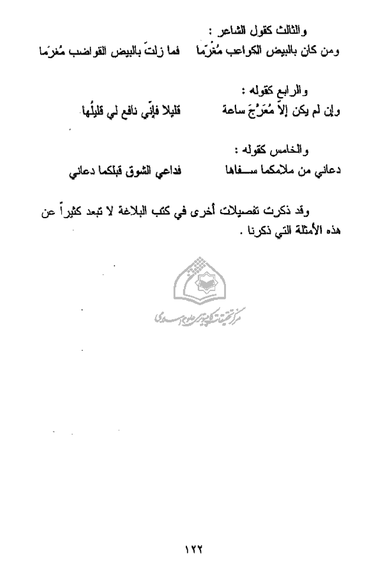 وقد ذكرت تفصيلات أخرى في كتب البلاغة لا تبعد كثيرا عن هذه الأمثلة التي ذكرنا.