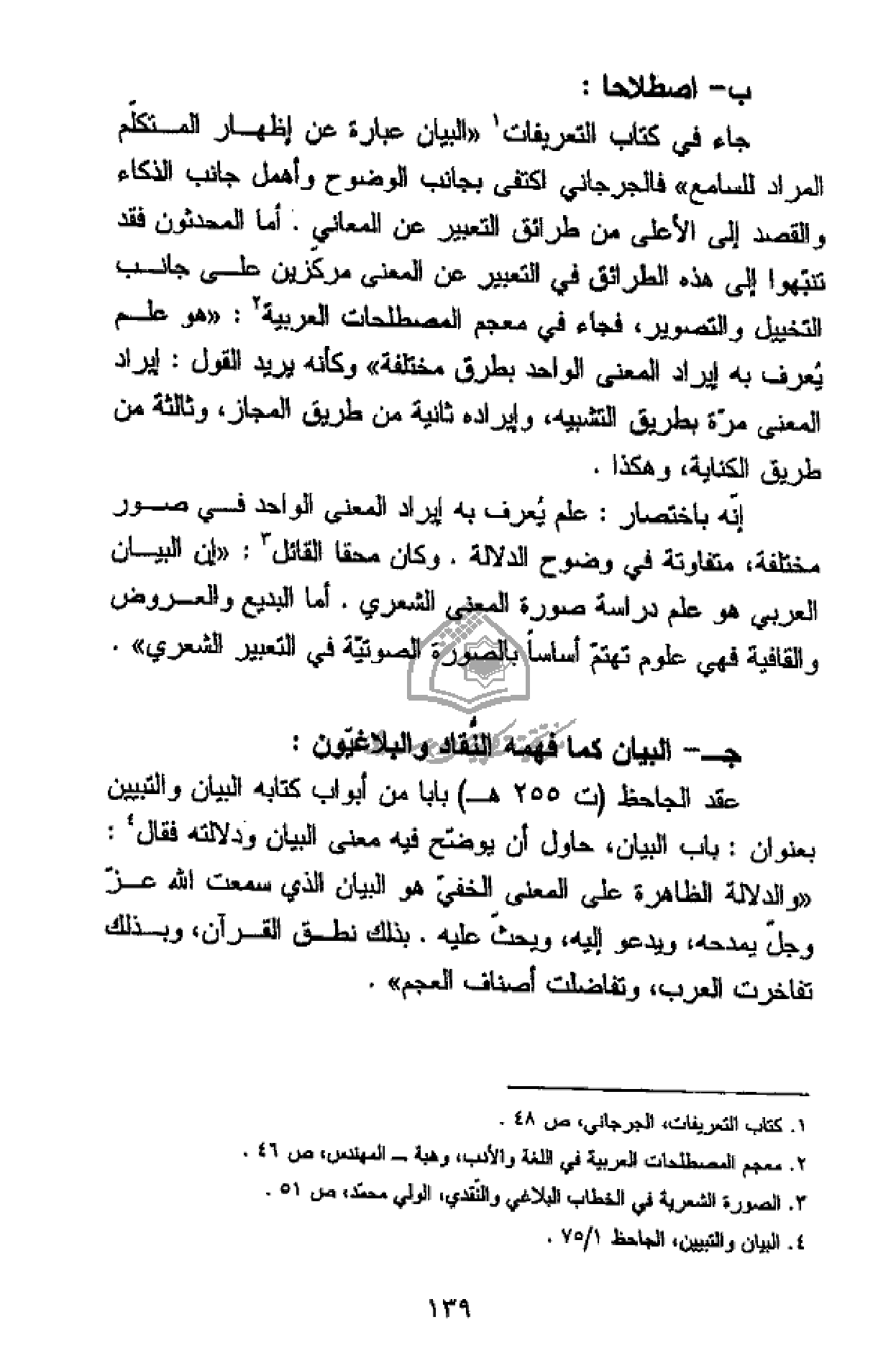 ج- البيان كما فهمه النّقاد والبلاغيّون: