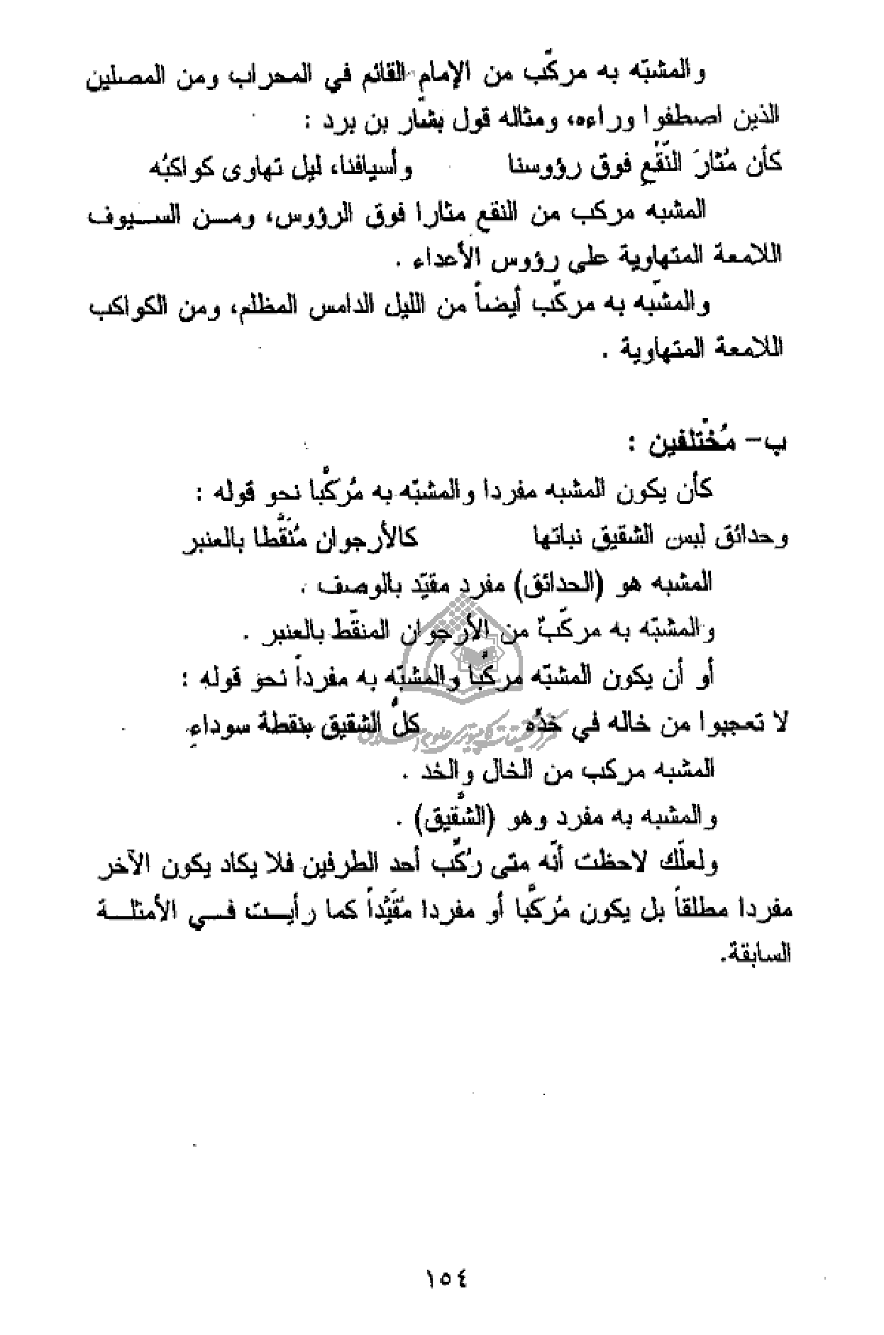 والمشبّه به مركّب من الإمام القائم في المحراب ومن المصلين الذين اصطفوا وراءه، ومثاله قول بشّار بن برد: