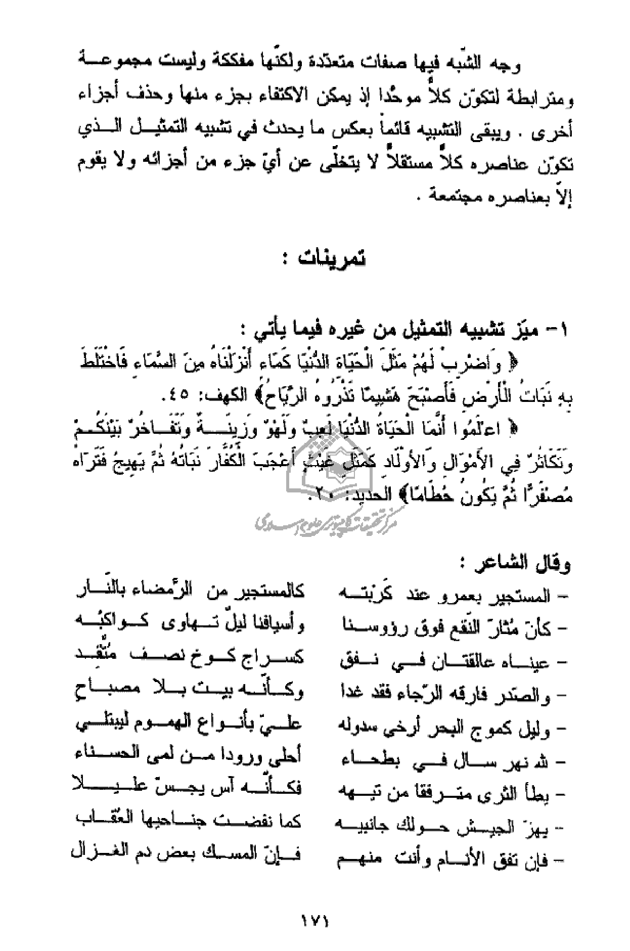 1 - ميّز تشبيه التمثيل من غيره فيما يأتي: