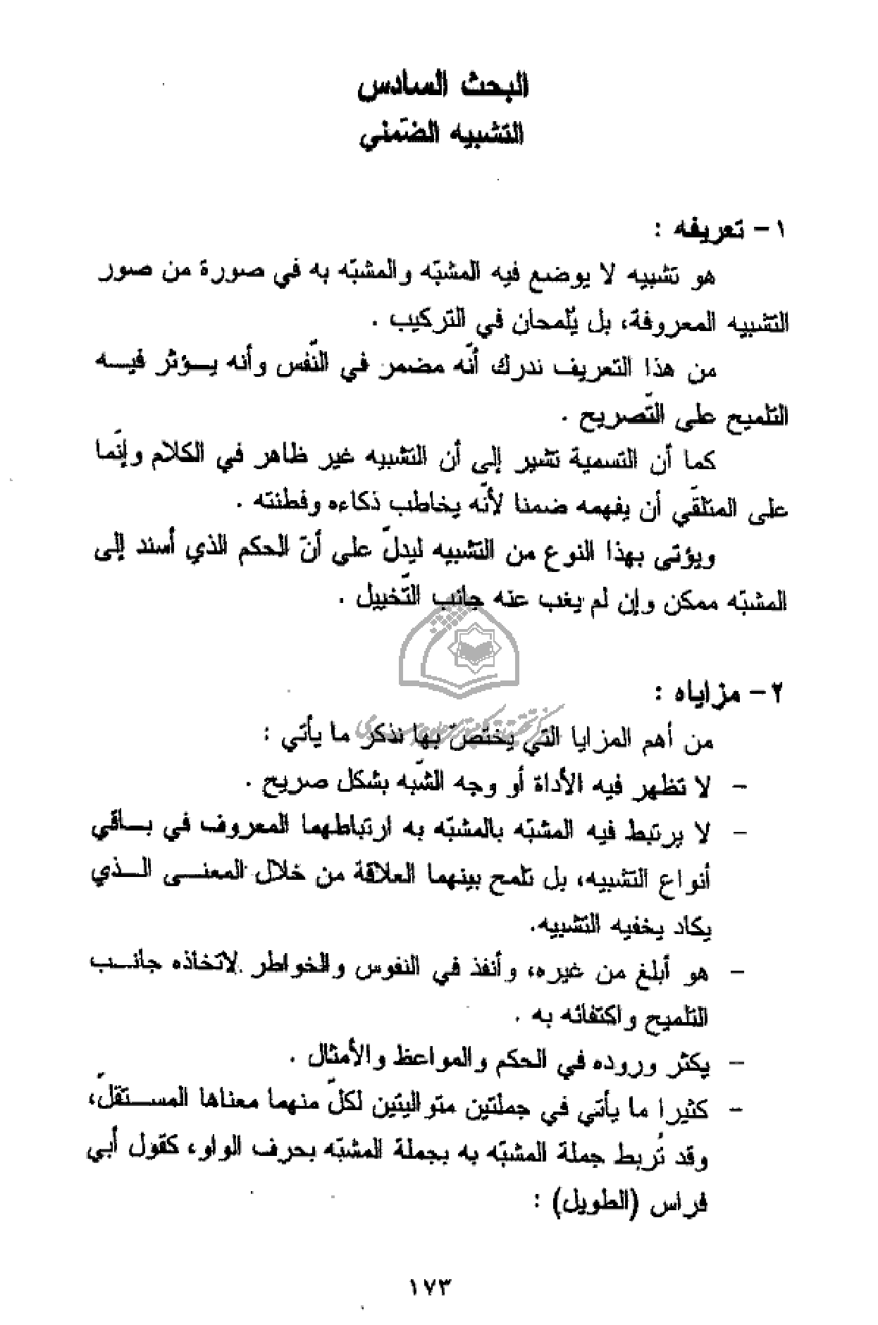 - لا تظهر فيه الأداة أو وجه الشّبه بشكل صريح.