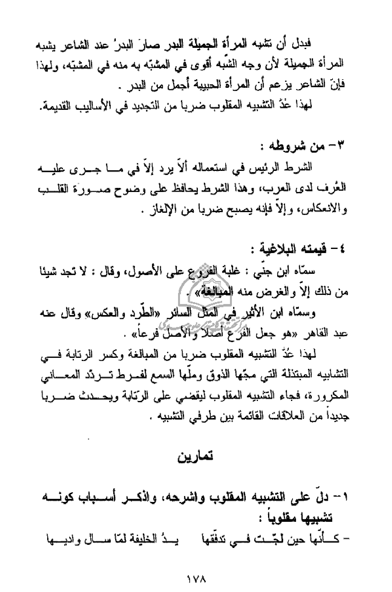1 - دلّ على التشبيه المقلوب واشرحه، واذكر أسباب كونه تشبيها مقلوبا: