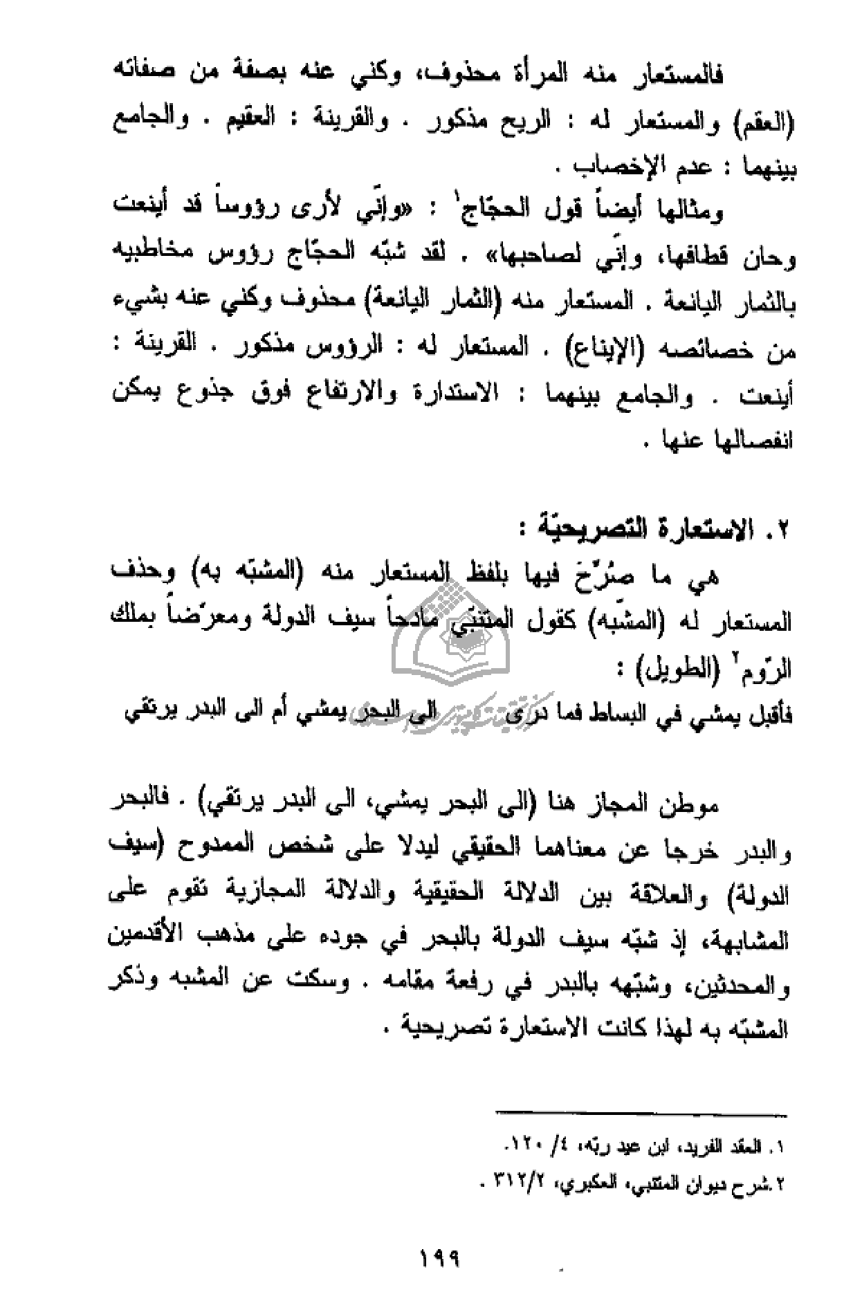 (¬2). شرح ديوان المتنبي، العكبري، 2/ 312.