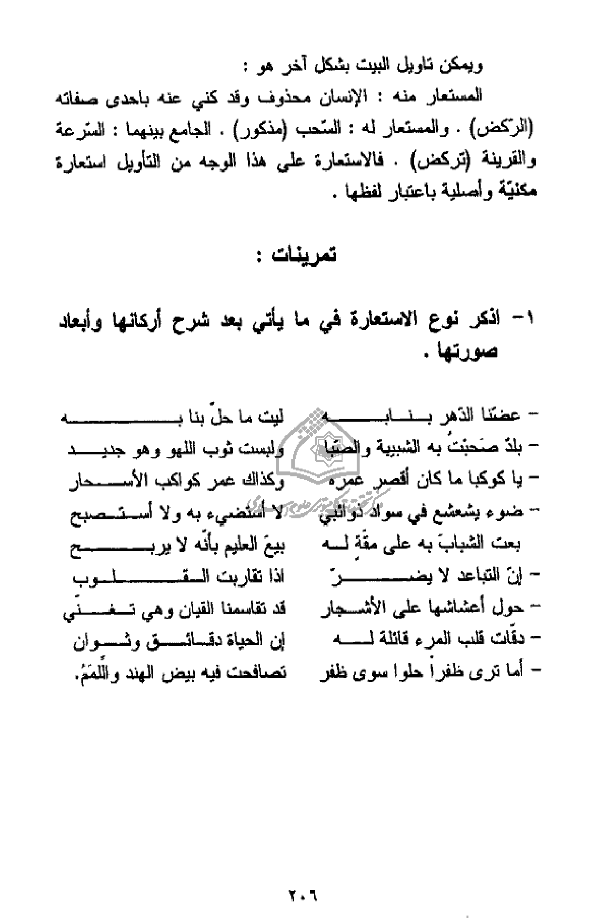 1 - اذكر نوع الاستعارة في ما يأتي بعد شرح أركانها وأبعاد صورتها.
