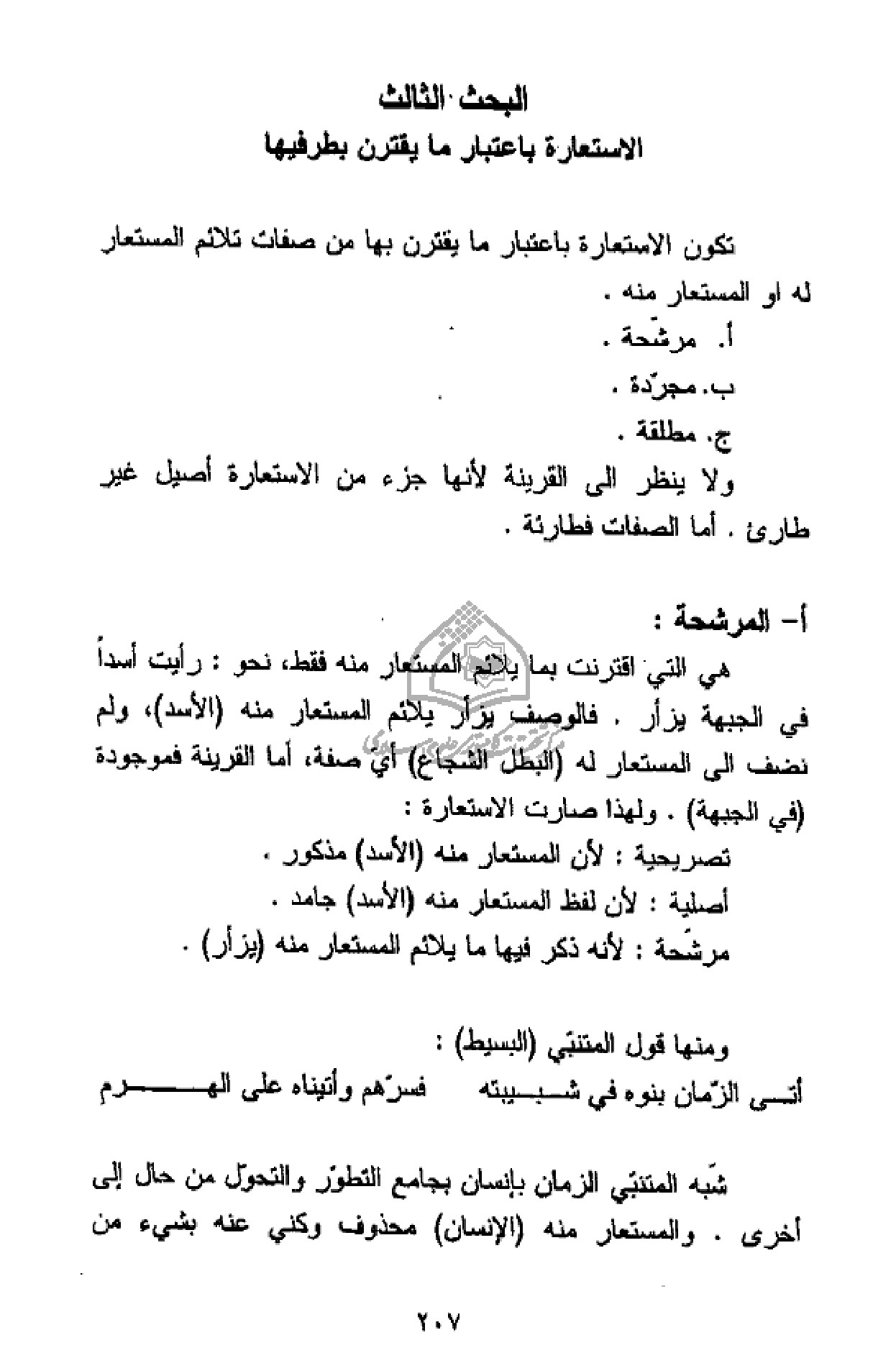 البحث الثالث الاستعارة باعتبار ما يقترن بطرفيها