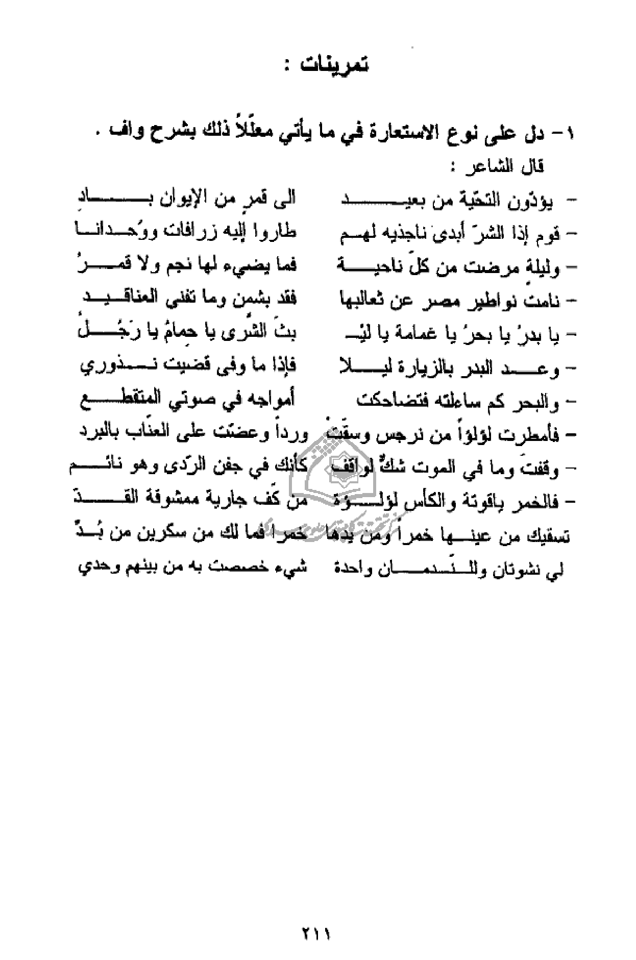 1 - دل على نوع الاستعارة في ما يأتي معلّلا ذلك بشرح واف.
