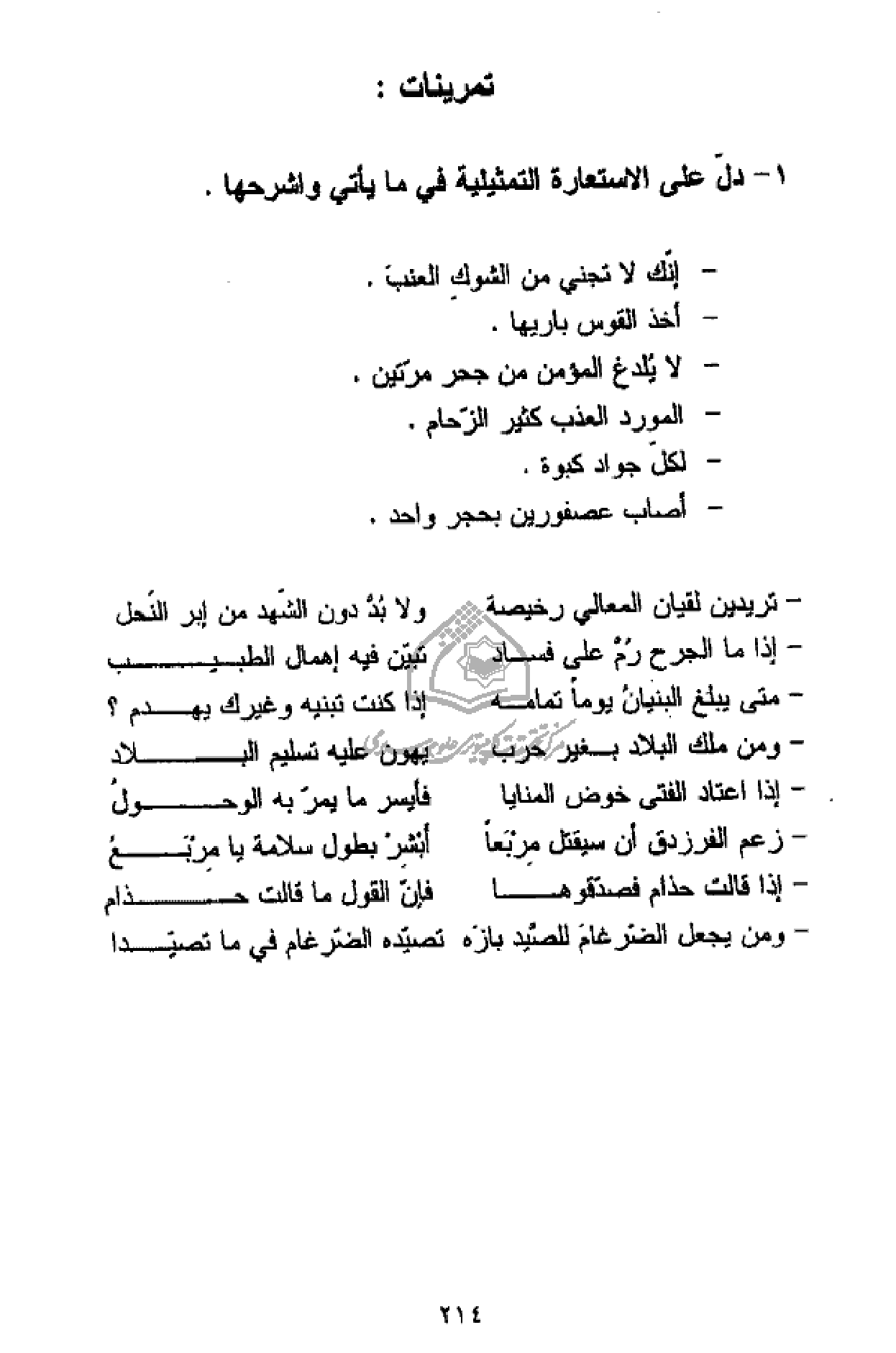 1 - دلّ على الاستعارة التمثيلية في ما يأتي واشرحها.