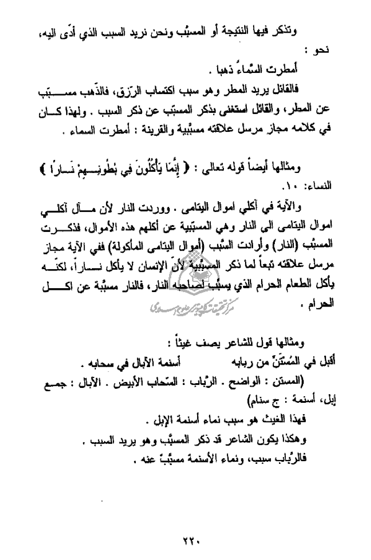 فالقائل يريد المطر وهو سبب اكتساب الرّزق، فالذّهب مسبّب عن المطر، والقائل استغنى بذكر المسبّب عن ذكر