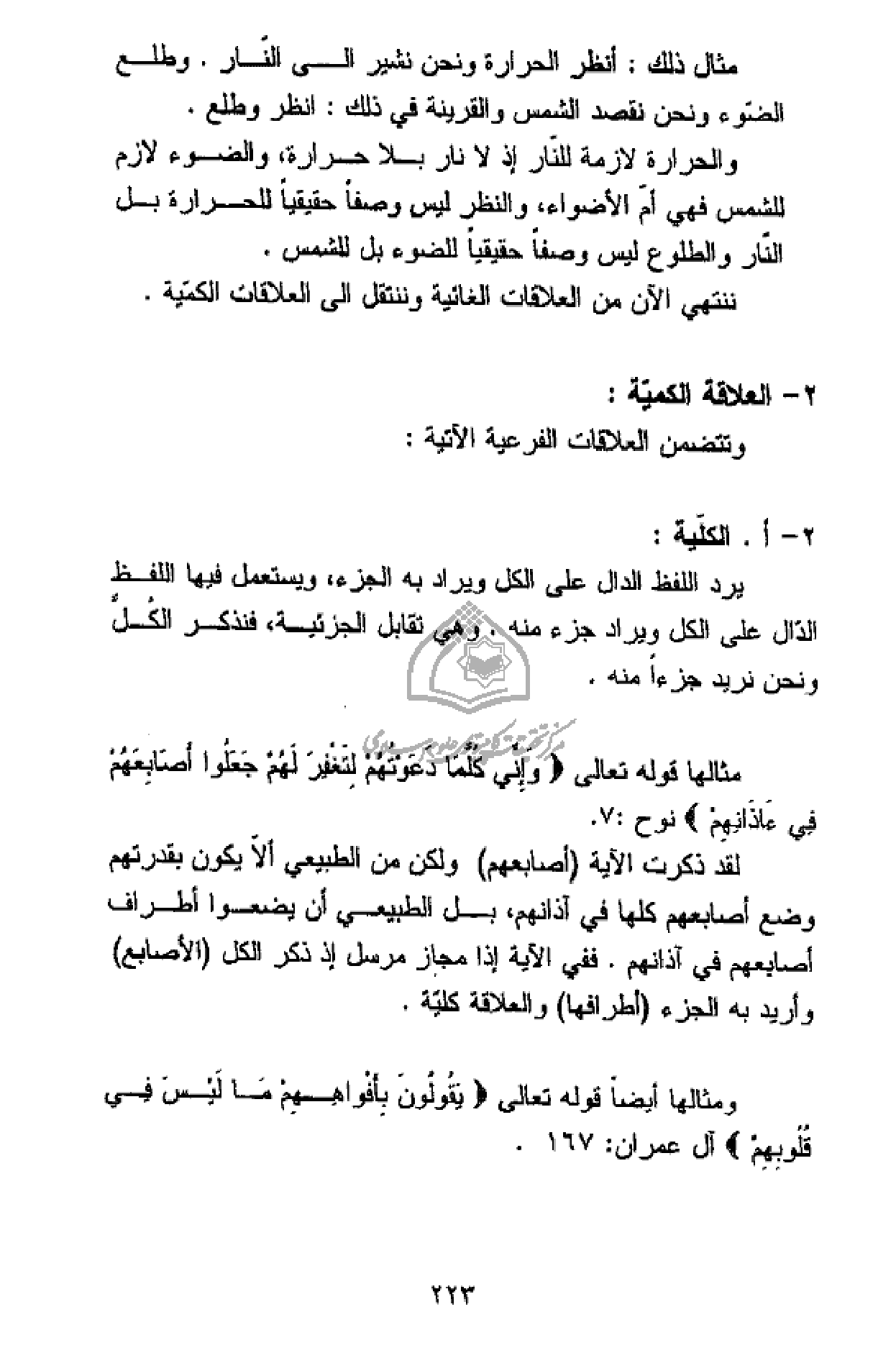 ننتهي الآن من العلاقات الغائية وننتقل الى العلاقات الكميّة.