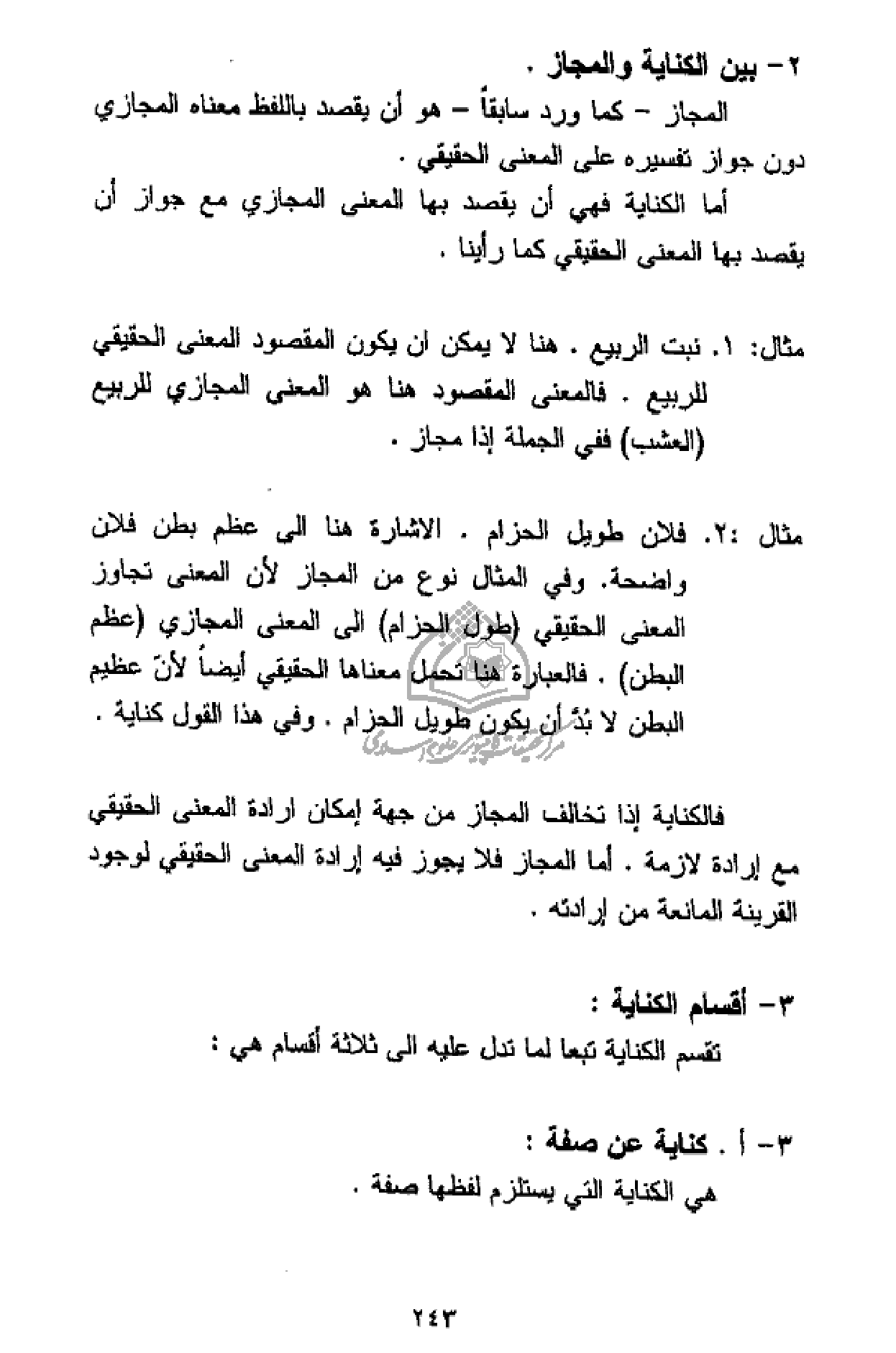 أما الكناية فهي أن يقصد بها المعنى المجازي مع جواز أن يقصد بها المعنى الحقيقي كما رأينا.