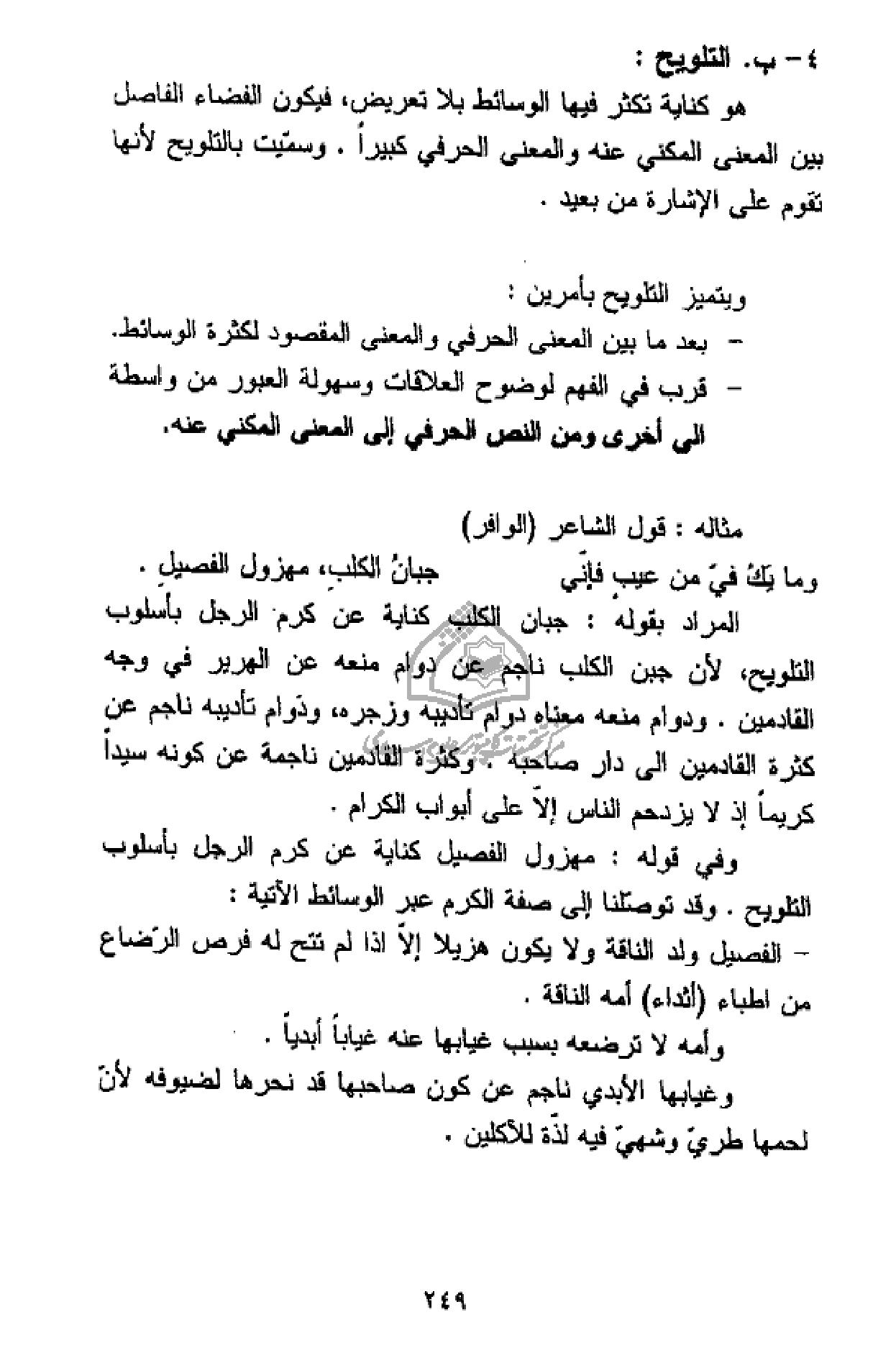 - بعد ما بين المعنى الحرفي والمعنى المقصود لكثرة الوسائط.