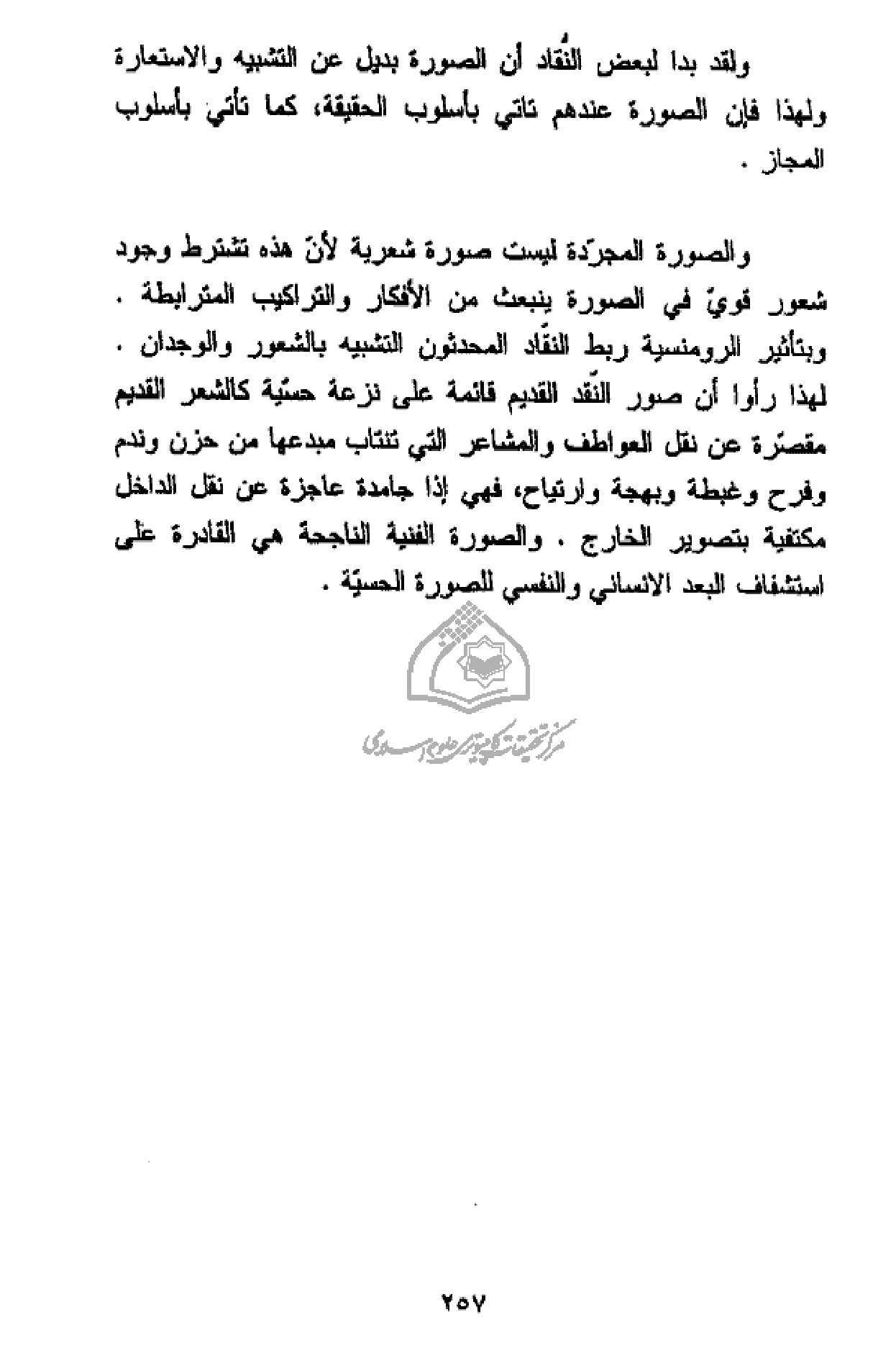 لهذا رأوا أن صور النّقد القديم قائمة على نزعة حسّية كالشعر القديم مقصّرة عن نقل العواطف والمشاعر التي تنتاب مبدعها من حزن وندم وفرح وغبطة وبهجة وارتياح، فهي إذا جامدة عاجزة عن نقل الداخل مكتفية بتصوير الخارج. والصورة الفنية الناجحة هي القادرة على استشفاف البعد الانساني والنفسي للصورة الحسيّة.