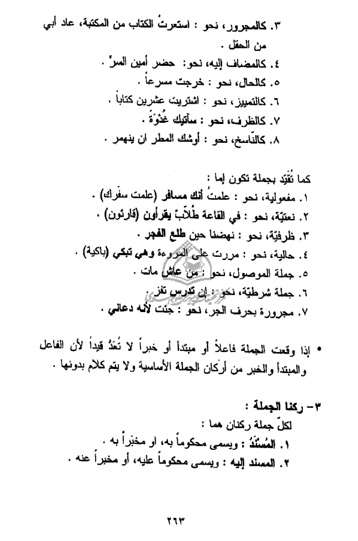 3. كالمجرور، نحو: استعرت الكتاب من المكتبة، عاد أبي من الحقل.