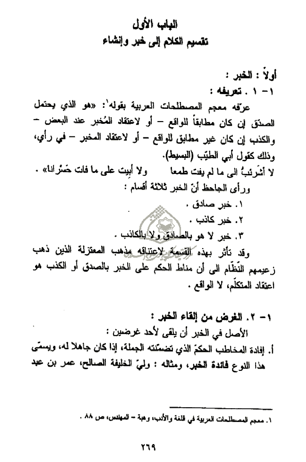الباب الأول تقسيم الكلام إلى خبر وإنشاء