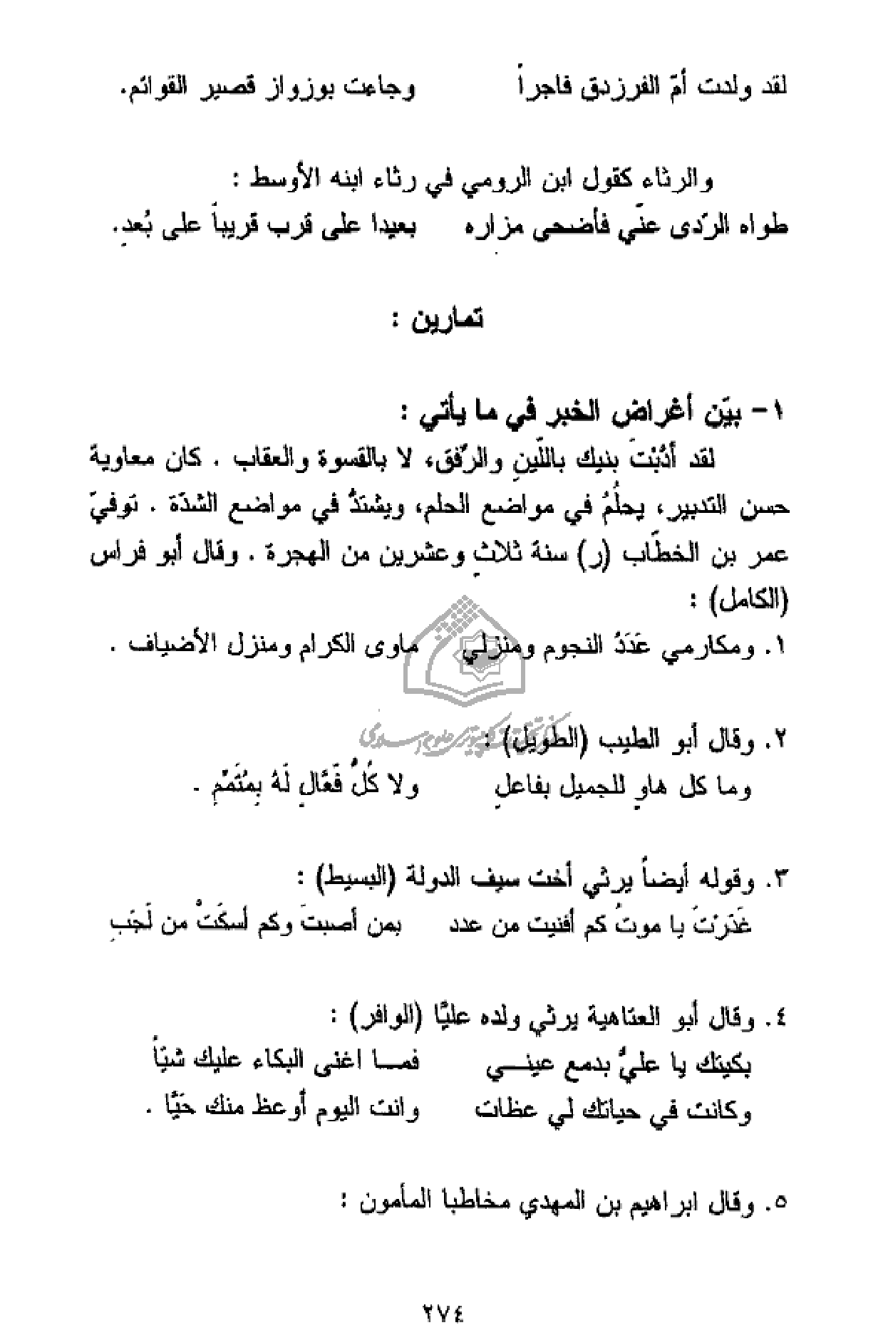 والرثاء كقول ابن الرومي في رثاء ابنه الأوسط: