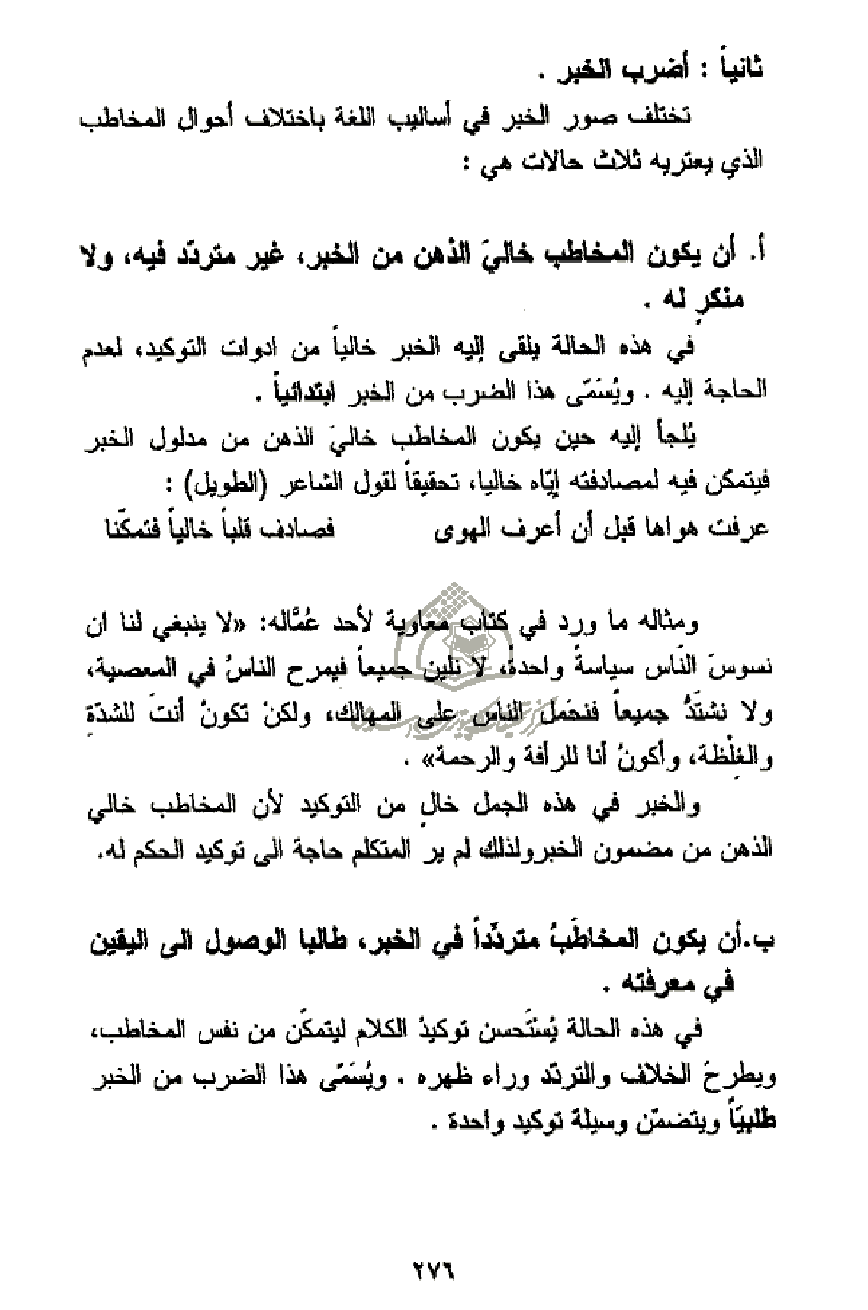 ب. أن يكون المخاطب متردّدا في الخبر، طالبا الوصول الى اليقين في معرفته.