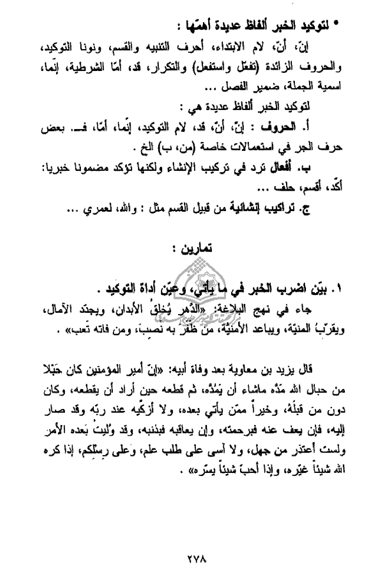1. بيّن اضرب الخبر في ما يأتي، وعيّن أداة التوكيد.