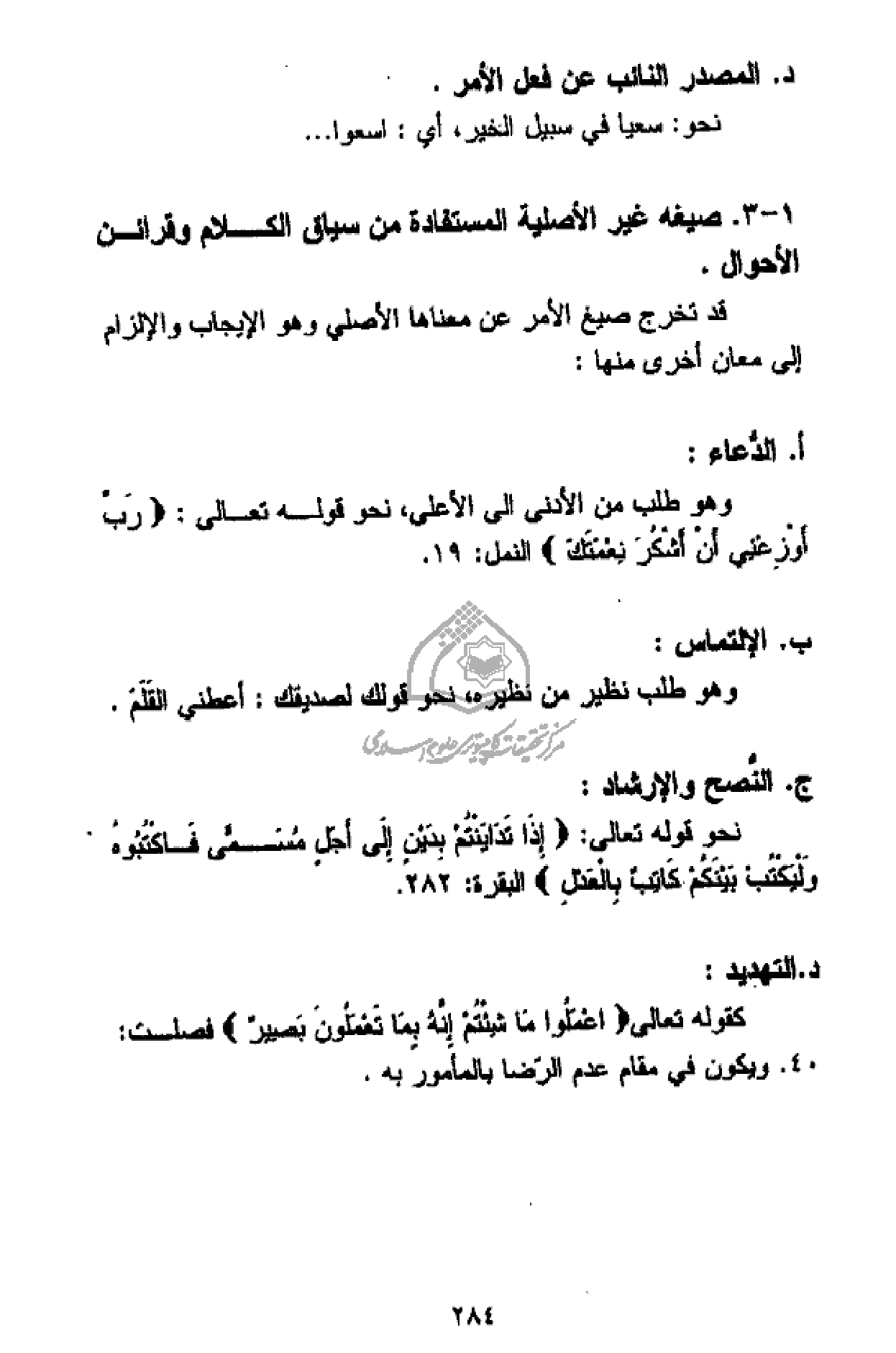د. المصدر النائب عن فعل الأمر.