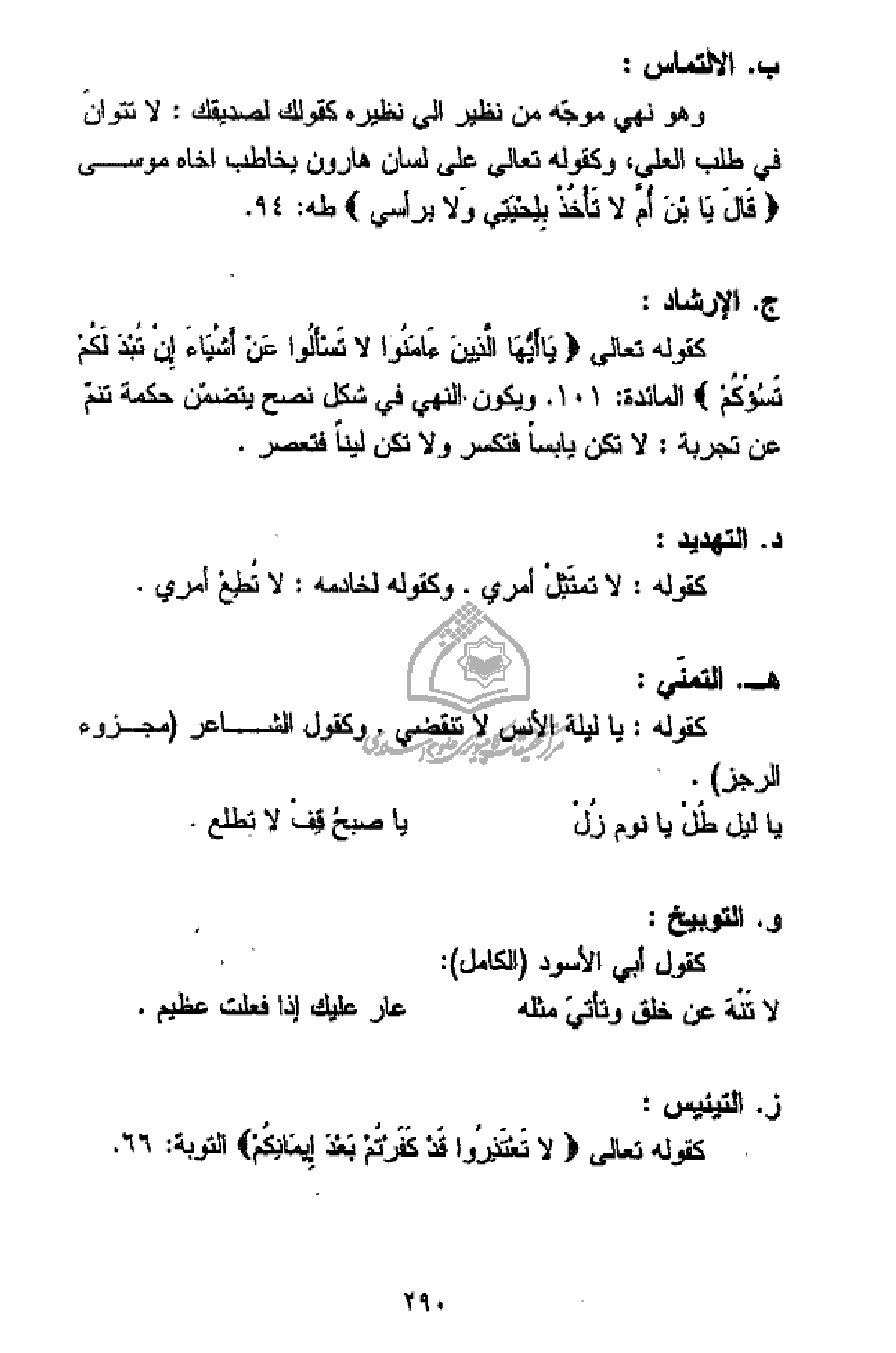 وهو نهي موجّه من نظير الى نظيره كقولك لصديقك: لا تتوان في طلب العلى، وكقوله تعالى على لسان هارون يخاطب اخاه موسى قالَ يَا بْنَ أُمَّ لا تَأْخُذْ بِلِحْيَتِي وَلا بِرَأْسِي طه: 94.