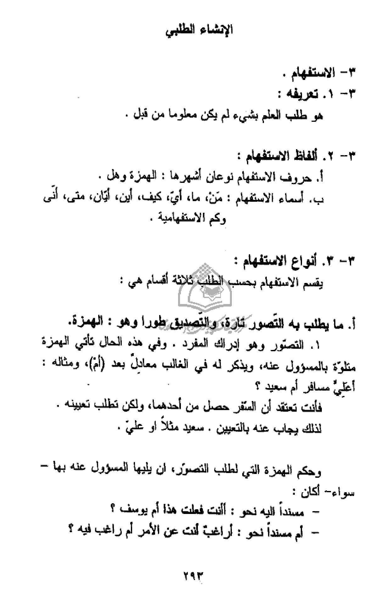 يقسم الاستفهام بحسب الطلب ثلاثة أقسام هي: