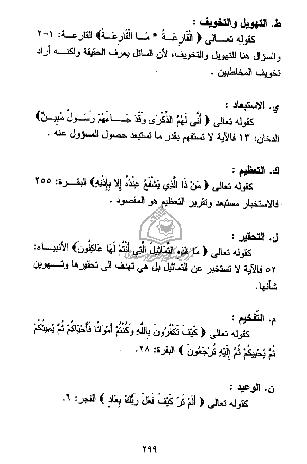 كقوله تعالى الْقارِعَةُ* مَا الْقارِعَةُ القارعة: 1 - 2 والسؤال هنا للتهويل والتخويف، لأن السائل يعرف الحقيقة ولكنه أراد تخويف المخاطبين.