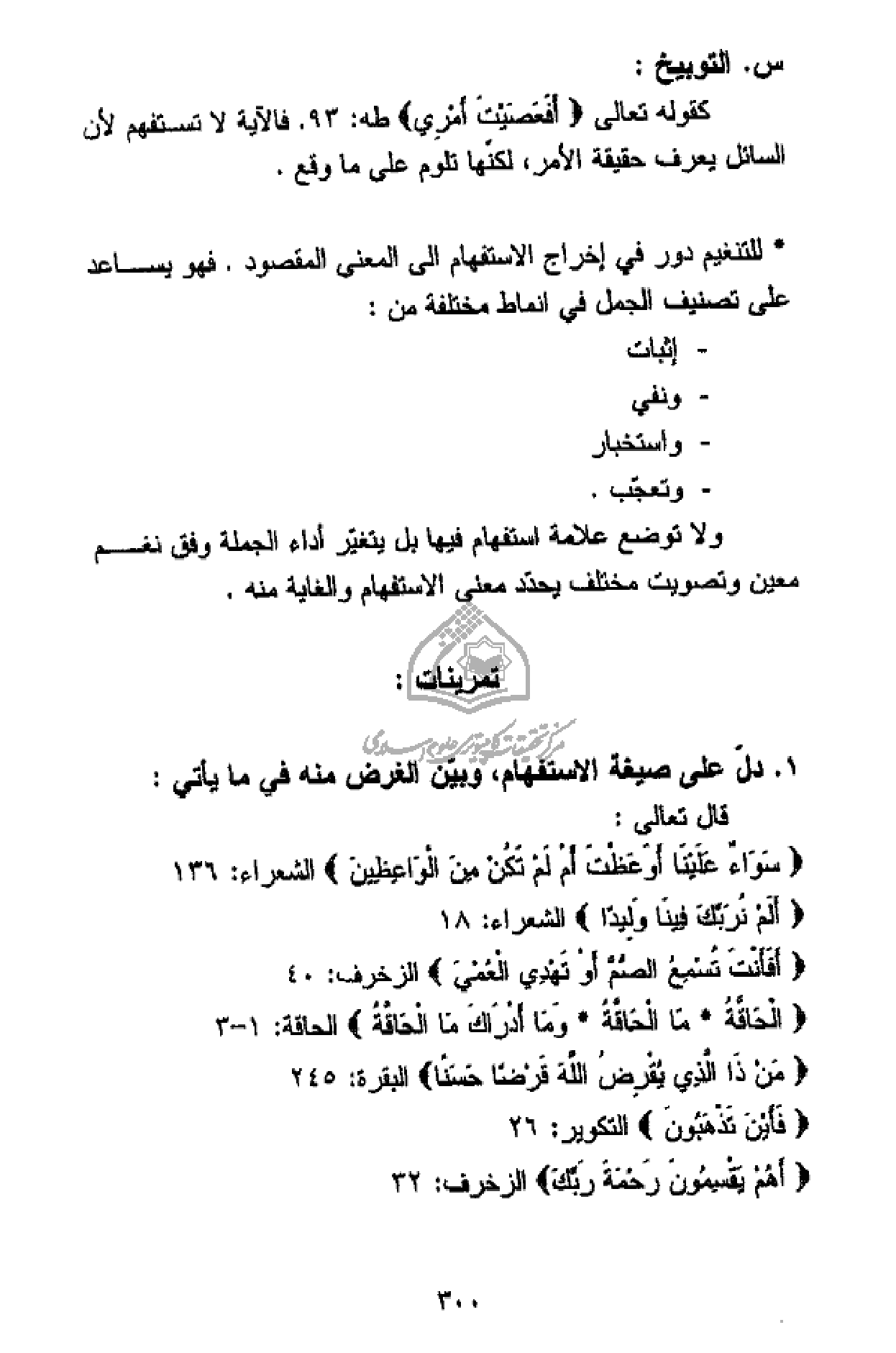 * للتنغيم دور في إخراج الاستفهام الى المعنى المقصود. فهو يساعد على تصنيف الجمل في انماط مختلفة من:
