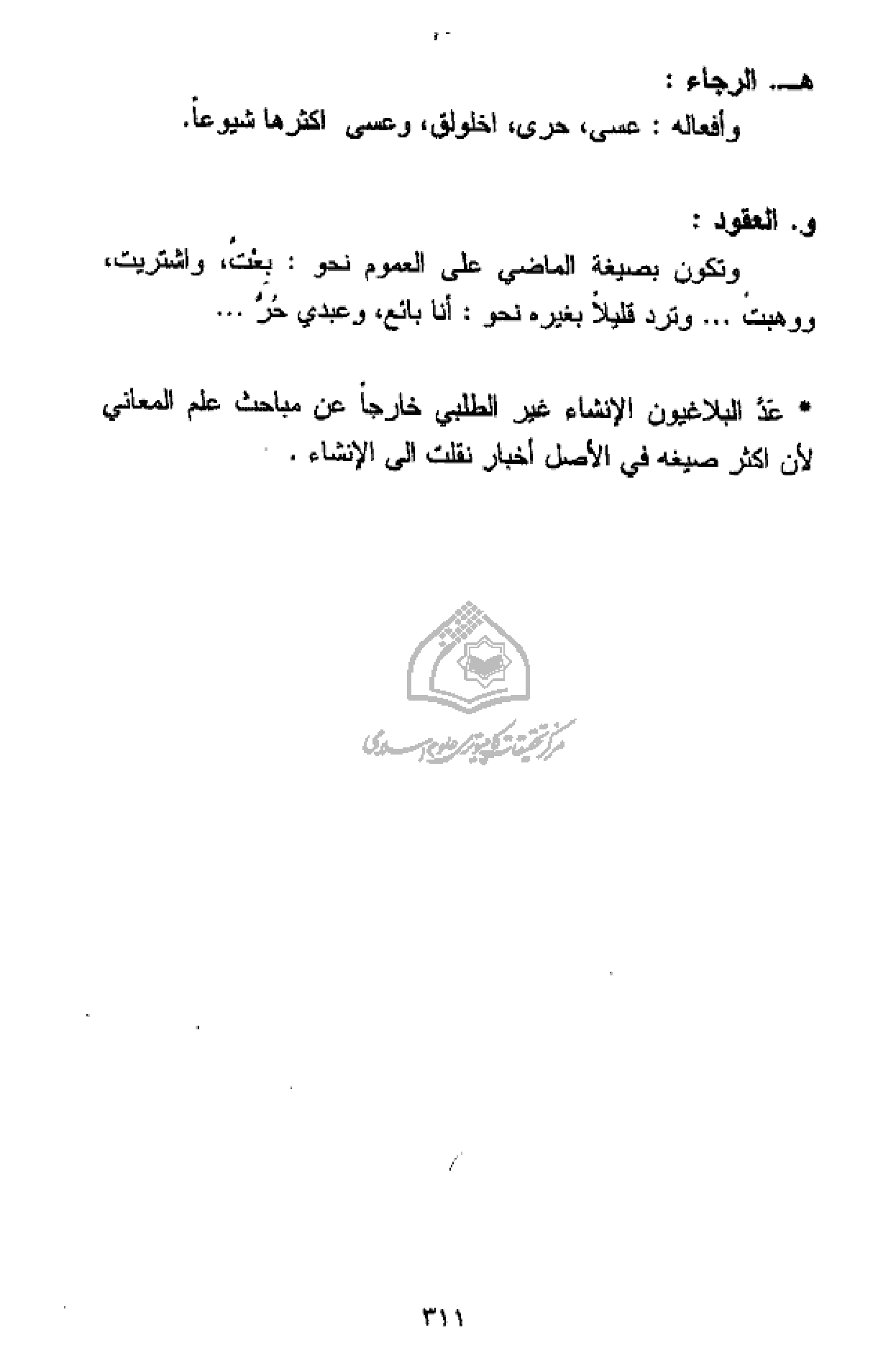 * عدّ البلاغيون الإنشاء غير الطلبي خارجا عن مباحث علم المعاني لأن اكثر صيغه في الأصل أخبار نقلت الى