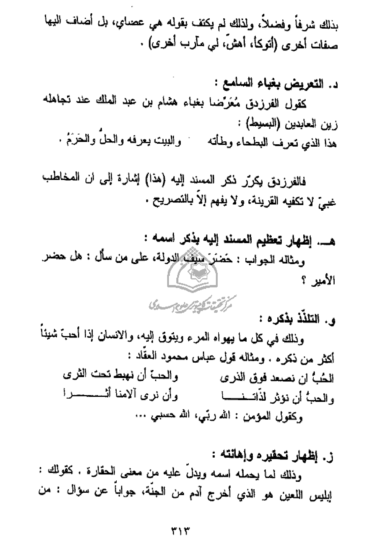 فالفرزدق يكرّر ذكر المسند إليه (هذا) إشارة إلى ان المخاطب غبيّ لا تكفيه القرينة، ولا يفهم إلّا بالتصريح.