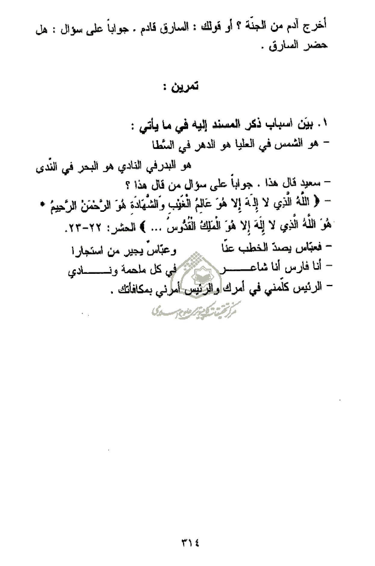1. بيّن اسباب ذكر المسند إليه في ما يأتي:
