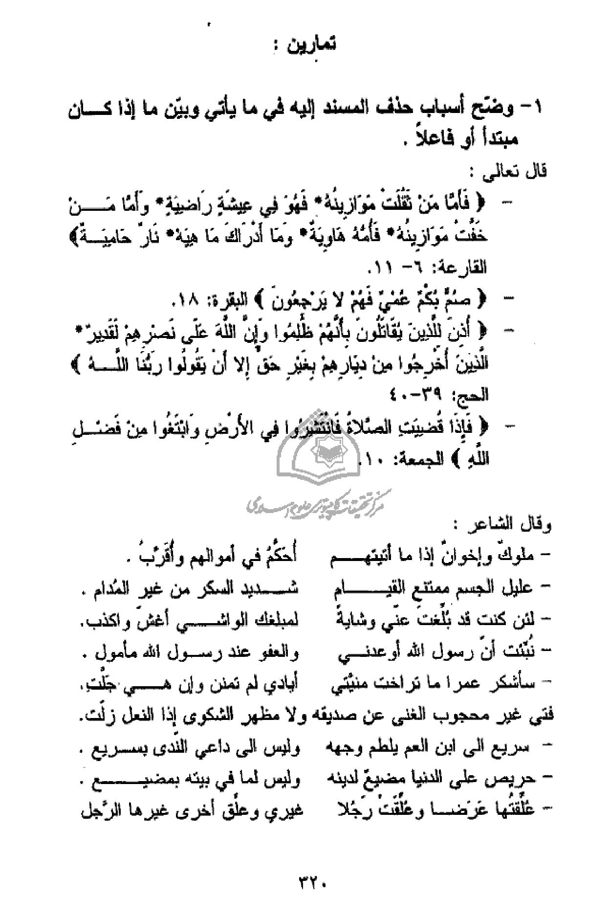 1 - وضّح أسباب حذف المسند إليه في ما يأتي وبيّن ما إذا كان مبتدأ أو فاعلا.