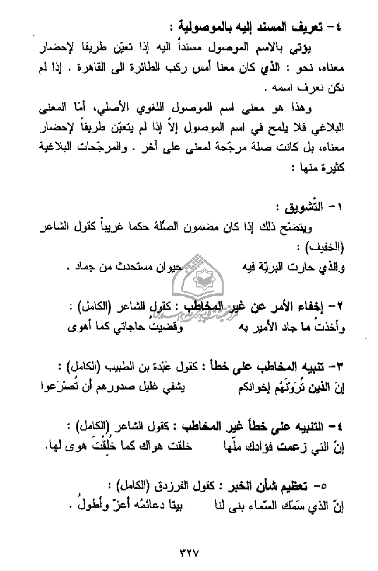 وهذا هو معنى اسم الموصول اللغوي الأصلي، أمّا المعنى البلاغي فلا يلمح في اسم الموصول إلّا إذا لم يتعيّن طريقا لإحضار معناه، بل كانت صلة مرجّحة لمعنى على آخر. والمرجّحات البلاغية كثيرة منها:
