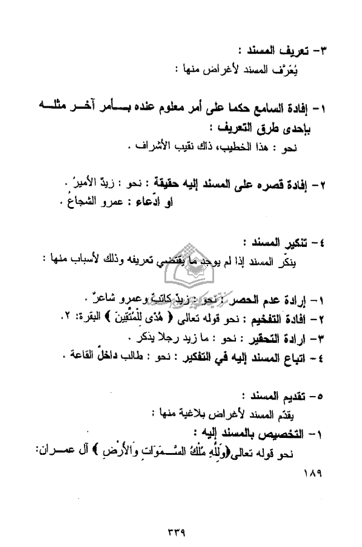 4 - اتباع المسند إليه في التفكير: نحو: طالب داخل القاعة.