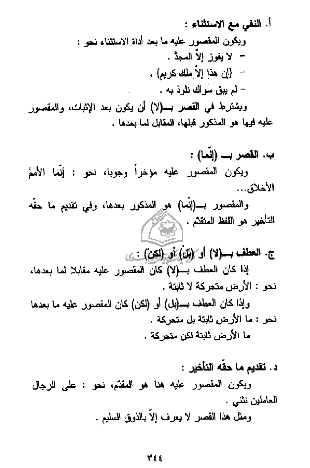 أ. النفي مع الاستثناء: