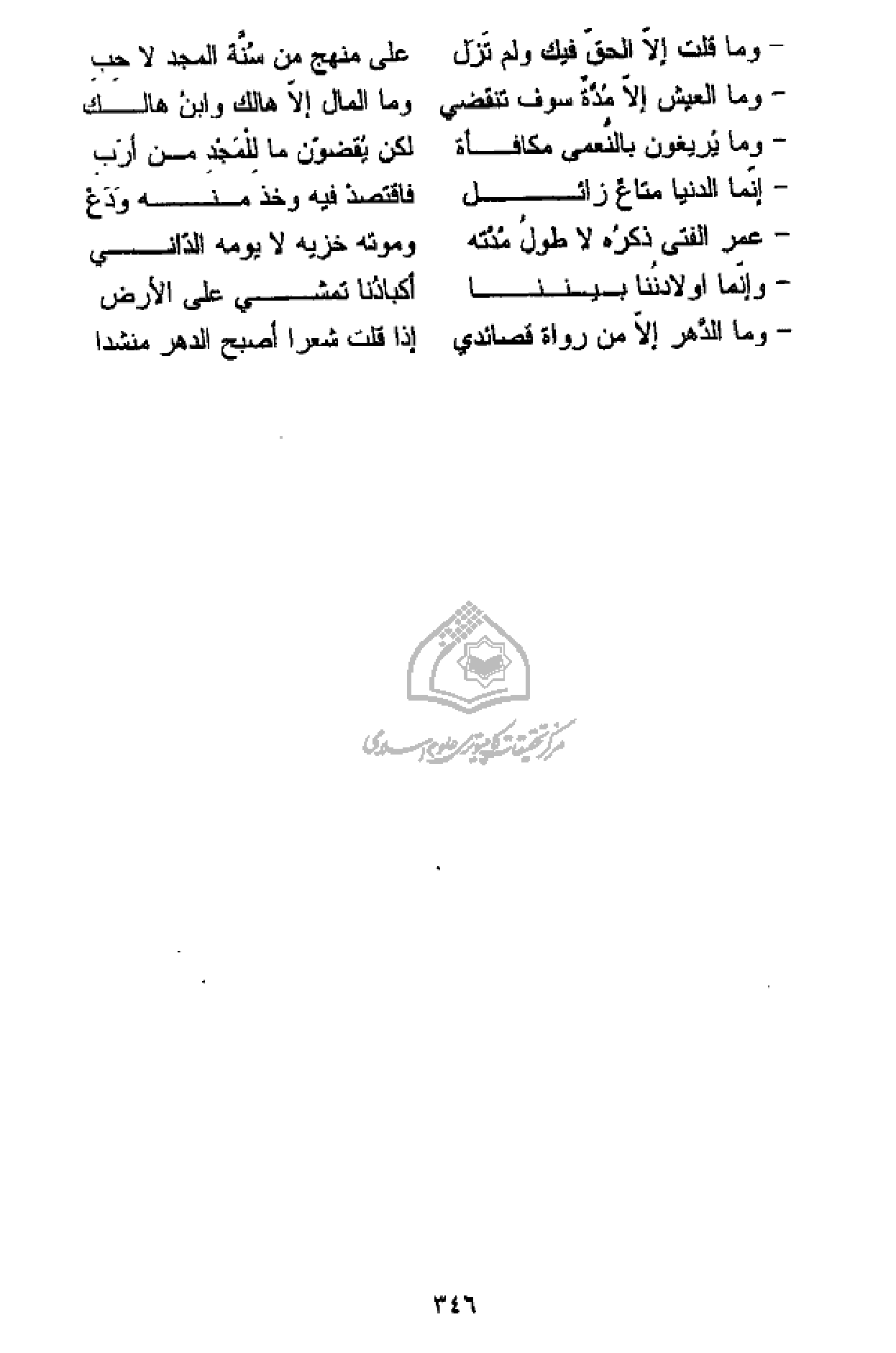 - وما العيش إلّا مدّة سوف تنقضي … وما المال إلّا هالك وابن هالك