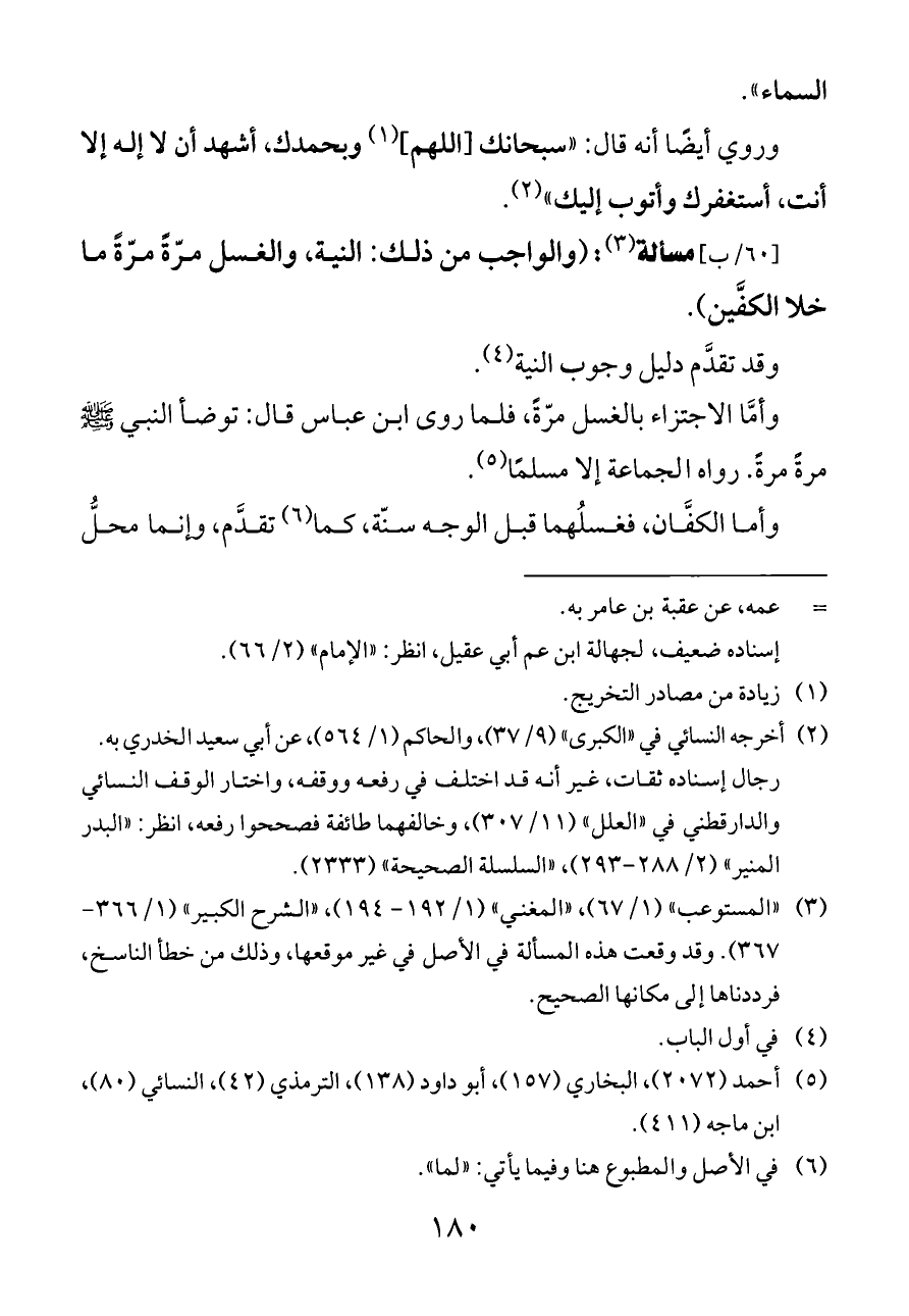 (¬٣) "المستوعب" (١/ ٦٧)، "المغني" (١/ ١٩٢ - ١٩٤)، "الشرح الكبير" (١/ ٣٦٦ - ٣٦٧). وقد وقعت هذه المسألة في الأصل في غير موقعها، وذلك من خطأ الناسخ، فرددناها إلى مكانها الصحيح.