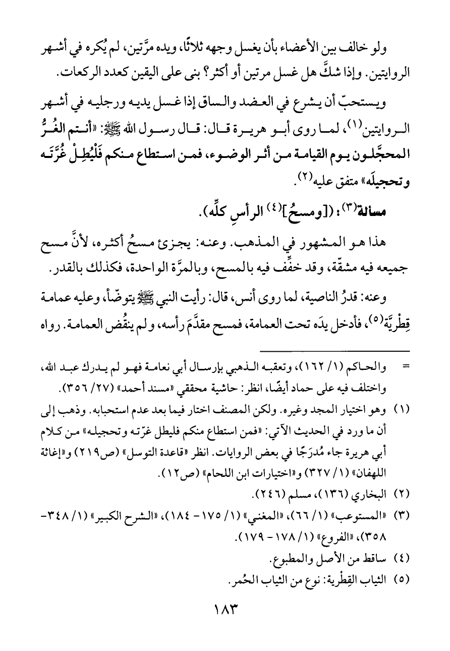 (¬٣) "المستوعب" (١/ ٦٦)، "المغني" (١/ ١٧٥ - ١٨٤)، "الشرح الكبير" (١/ ٣٤٨ - ٣٥٨)، "الفروع" (١/ ١٧٨ - ١٧٩).