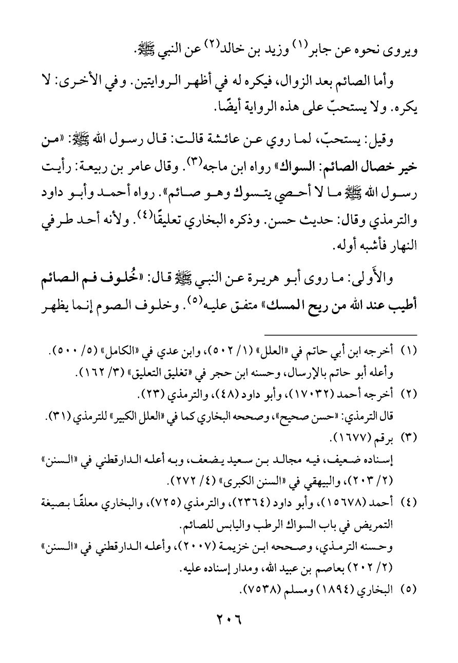 (¬٤) أحمد (١٥٦٧٨)، وأبو داود (٢٣٦٤)، والترمذي (٧٢٥)، والبخاري معلقًا بصيغة التمريض في باب السواك الرطب واليابس للصائم.