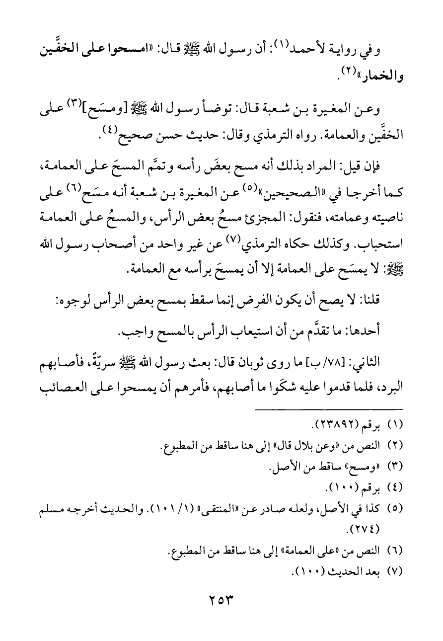 (¬٦) النص من "على العمامة" إلى هنا ساقط من المطبوع.