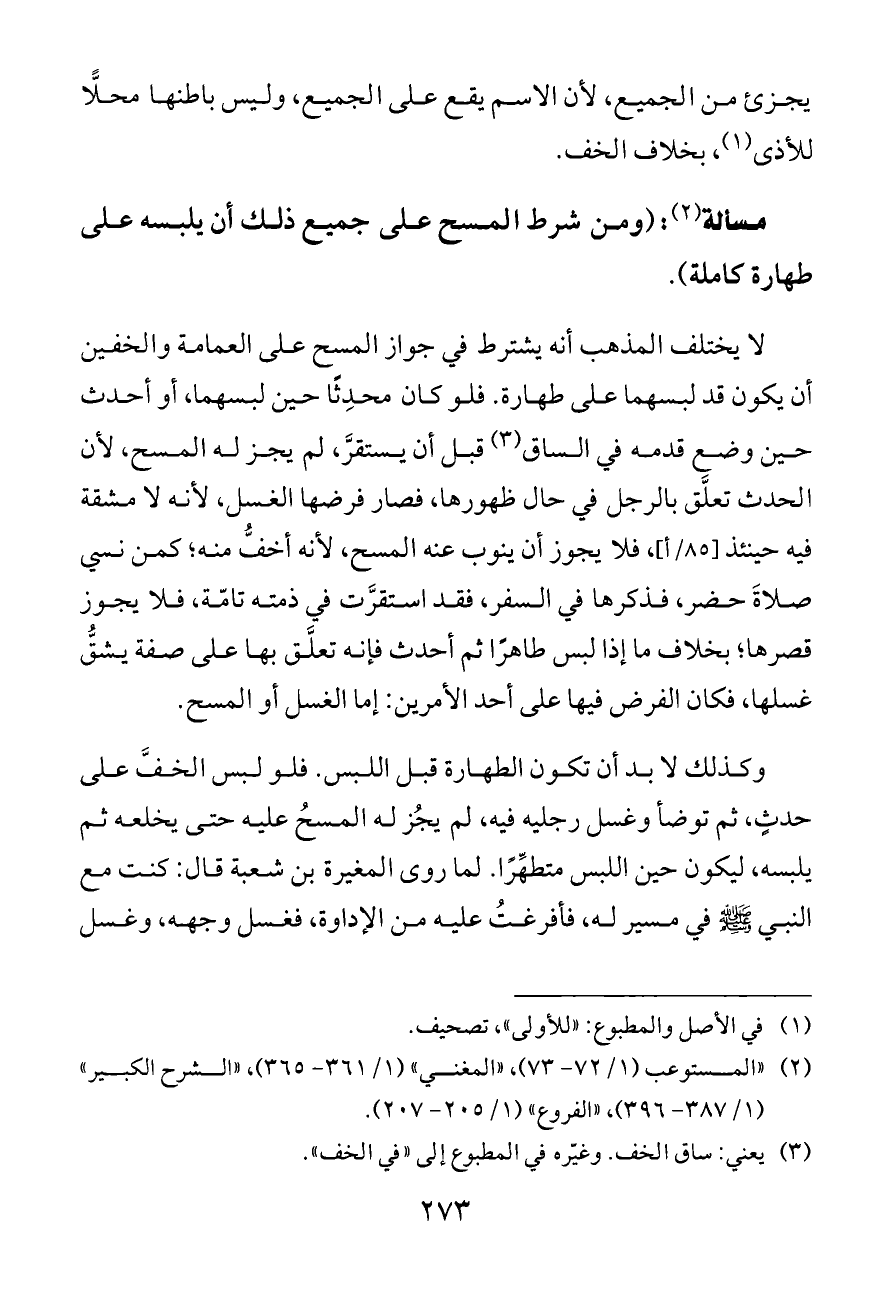 (¬٣) يعني: ساق الخف. وغيّره في المطبوع إلى "في الخف".