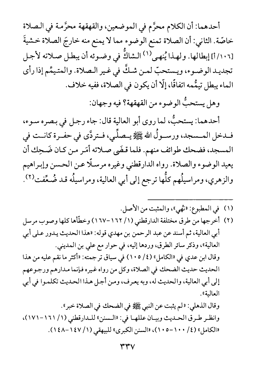 وقال الذهلي: «لم يثبت عن النبي - صلى الله عليه وسلم - في الضحك في الصلاة خبر».