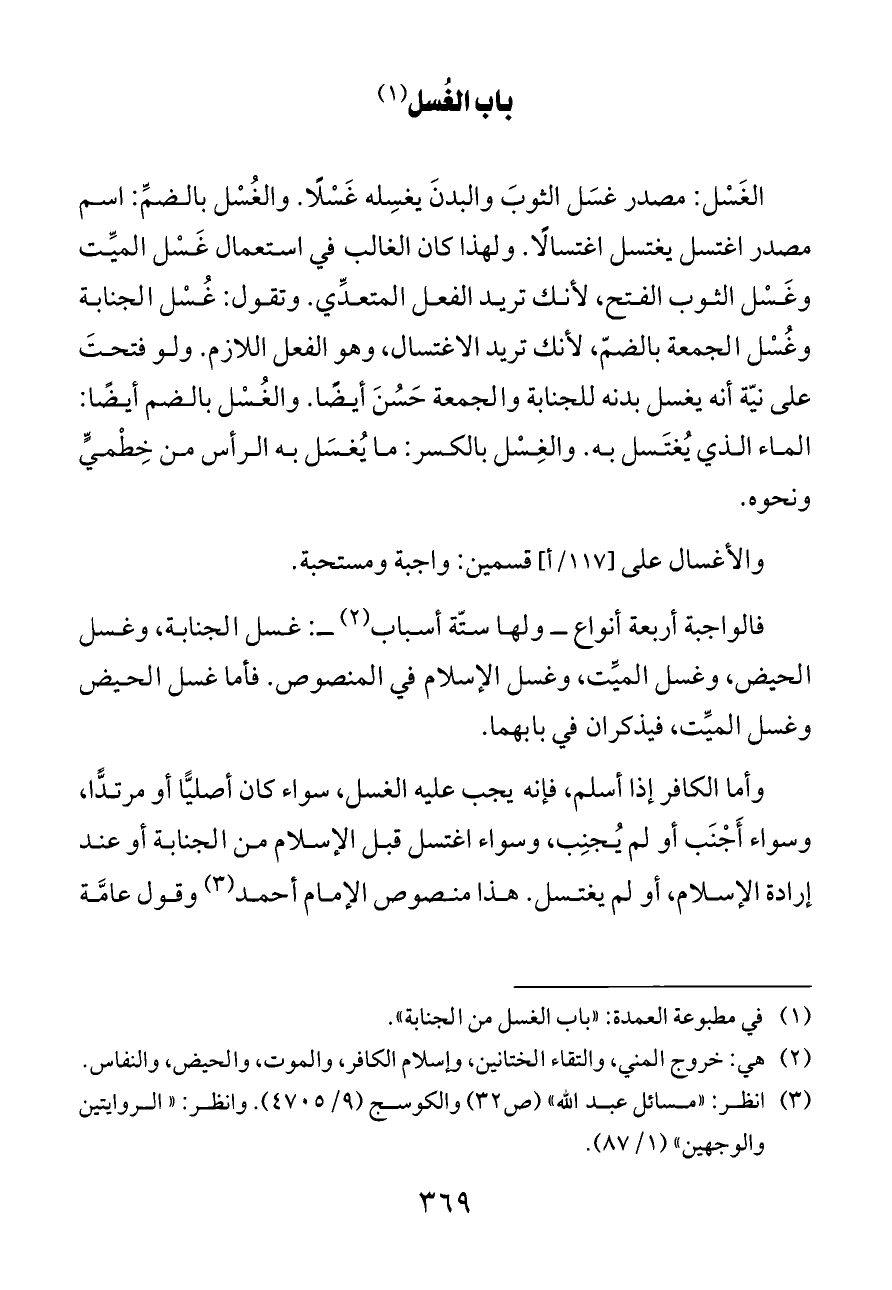 (¬١) في مطبوعة العمدة: «باب الغسل من الجنابة».