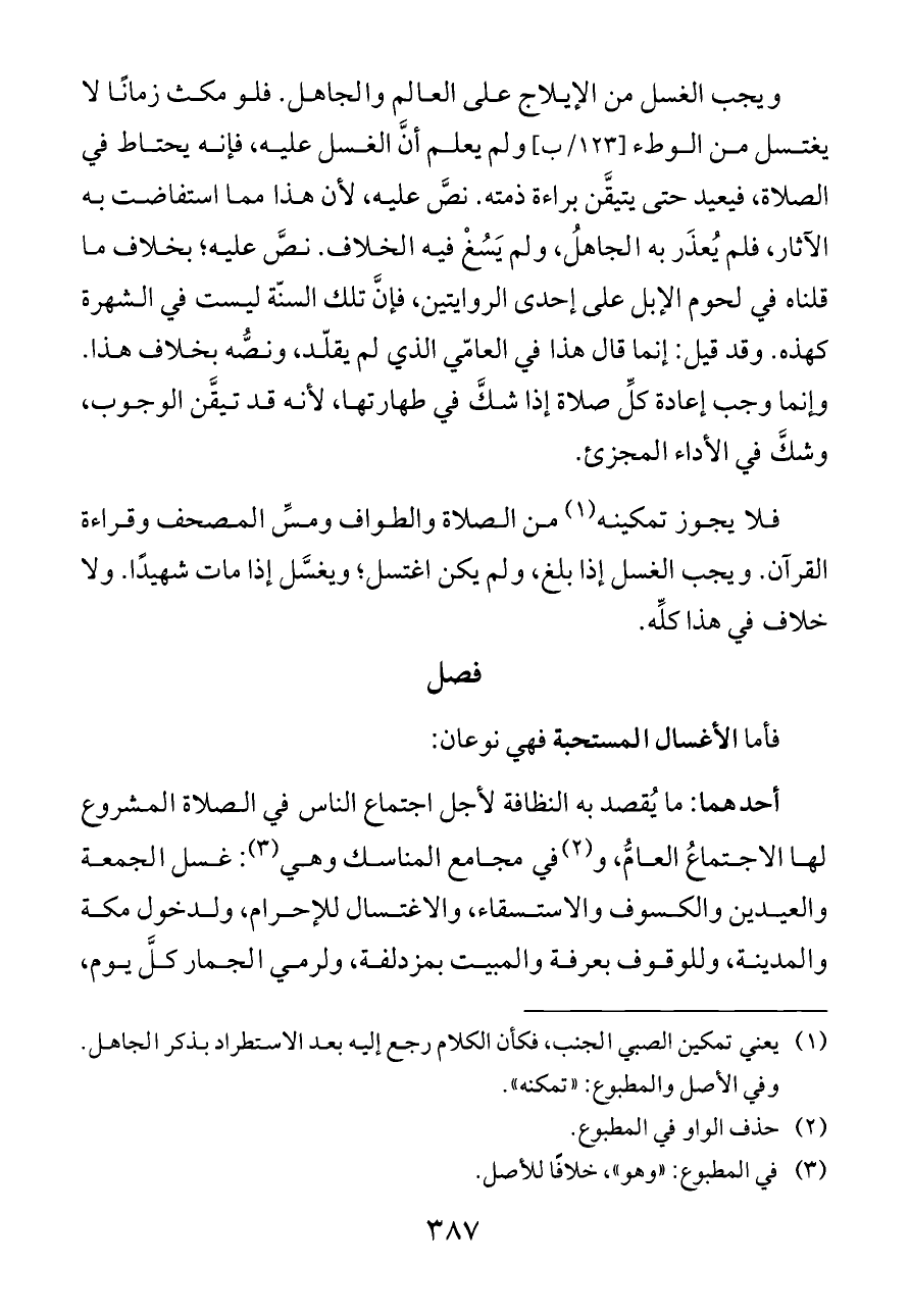 (¬١) يعني تمكين الصبي الجنب، فكأن الكلام رجع إليه بعد الاستطراد بذكر الجاهل. وفي الأصل والمطبوع: «تمكنه».