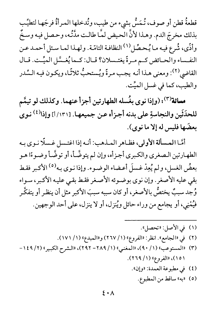 (¬٣) «المستوعب» (١/ ٩٠)، «المغني» (١/ ٢٨٩ - ٢٩٢)، «الشرح الكبير» (٢/ ١٤٩ - ١٥١)، «الفروع» (١/ ٢٦٩).