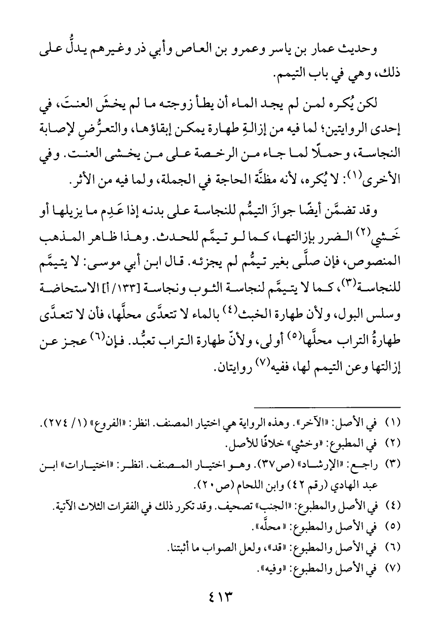 (¬٣) راجع: «الإرشاد» (ص ٣٧). وهو اختيار المصنف. انظر: «اختيارات» ابن عبد الهادي (رقم ٤٢) وابن اللحام (ص ٢٠).