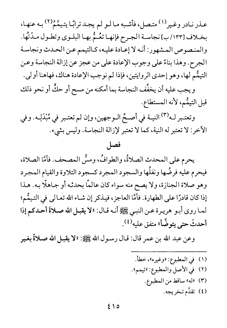 (¬٢) في الأصل والمطبوع: «تيمم».