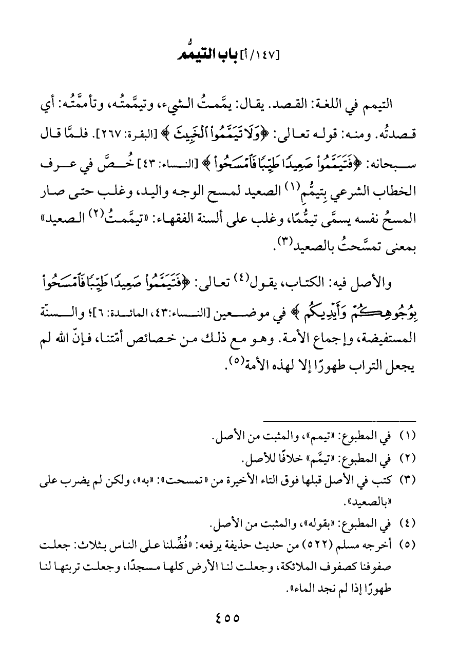 (¬٣) كتب في الأصل قبلها فوق التاء الأخيرة من «تمسحت»: «به»، ولكن لم يضرب على «بالصعيد».